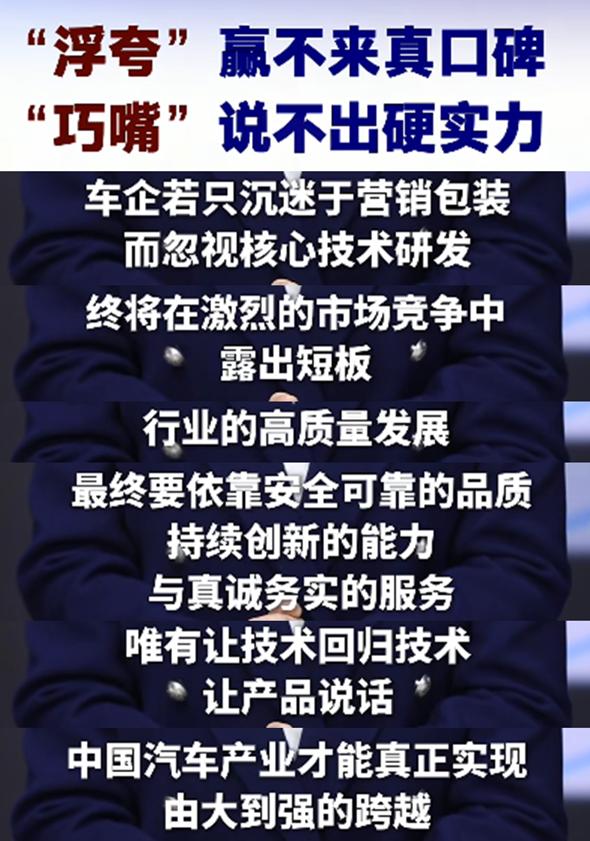 有些车企就是“虚招比实招多”: 吹营销>搞研发,玩概念>做实用; 发布会说“黑话”、零件叫“武侠名”,净整没用的; 踩同行、假订单,把“忽悠”当流量密码。 但虚的撑不起真市场——技术不行,再能吹也早晚露馅。行业要变强,得靠“真东西”:车够好、技术硬、不耍滑,让产品自己证明自己。新能源