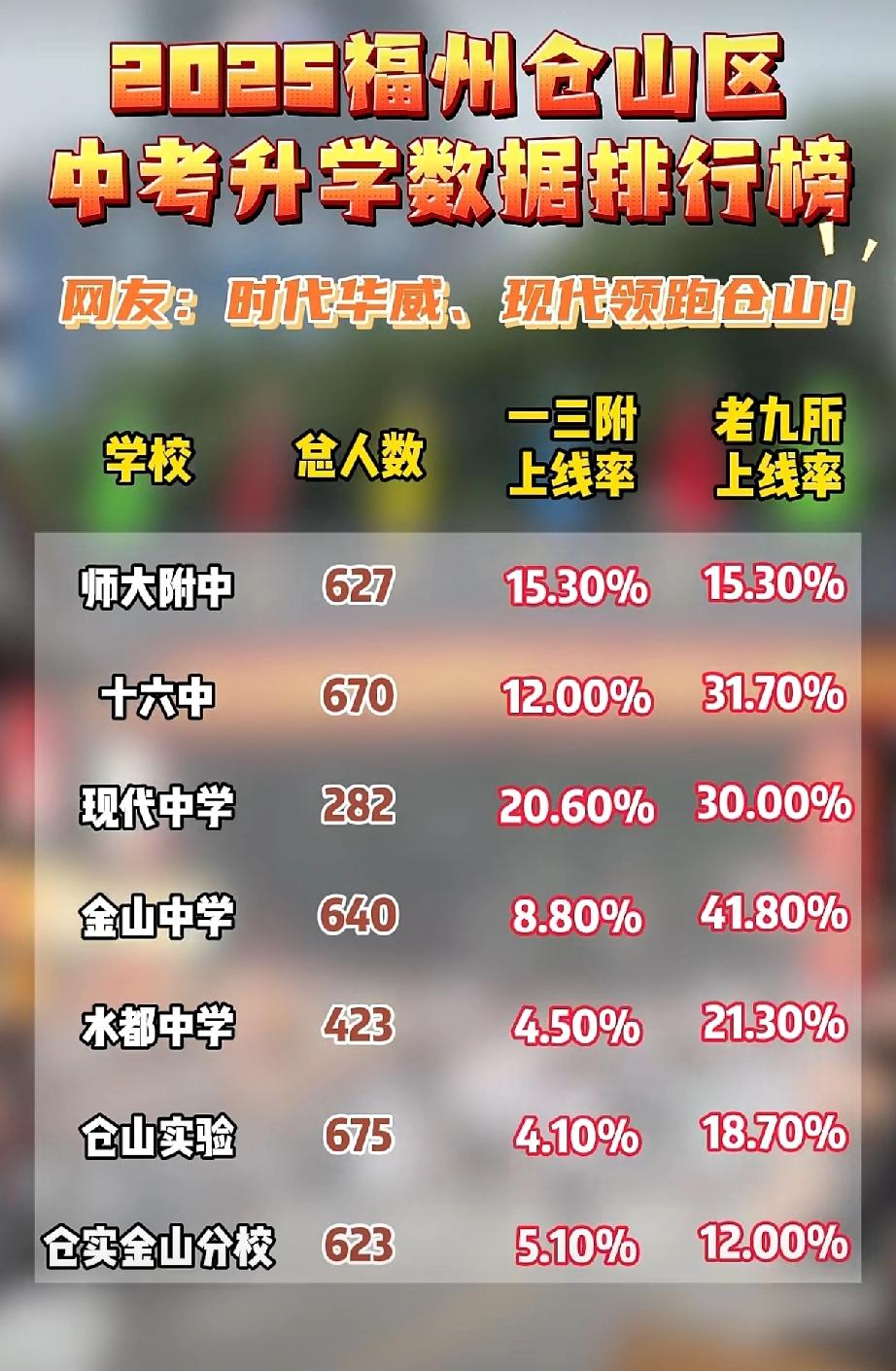 仓山区中考升学排行榜!时代华威、现代两私立学校遥遥领先!