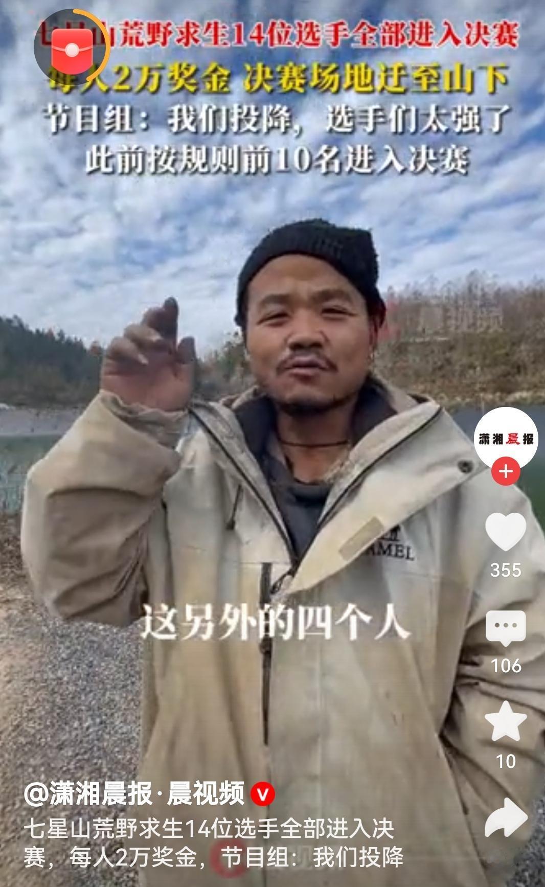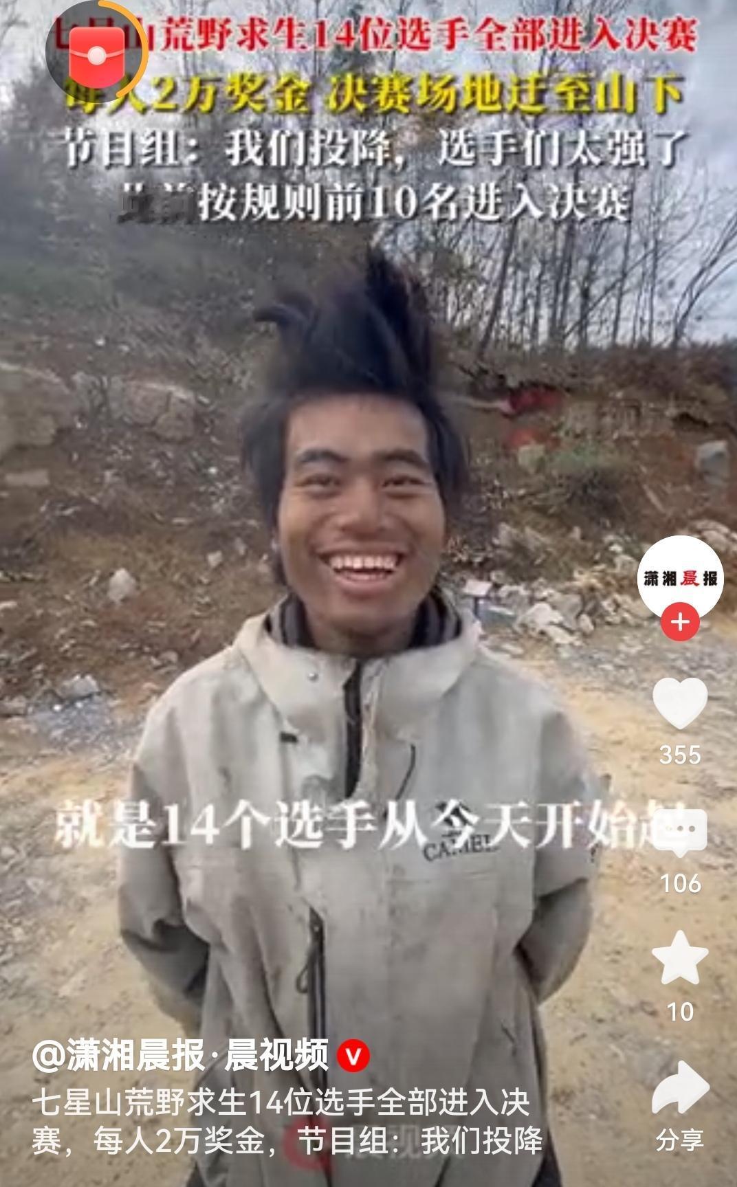 七星山荒野求生14位选手全部进决赛这届选手也太会“反杀”了!14人全闯决赛逼得节目组“投降”,又强又会玩~荒野里的默契协作、硬核生存力都好圈粉,决赛必须蹲住看神仙过招![比心][比心][比心] 野外求生赛 评论打卡任务