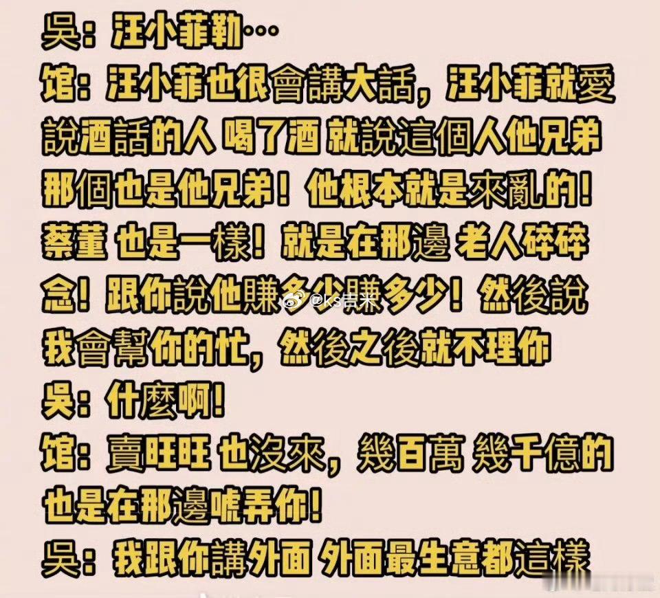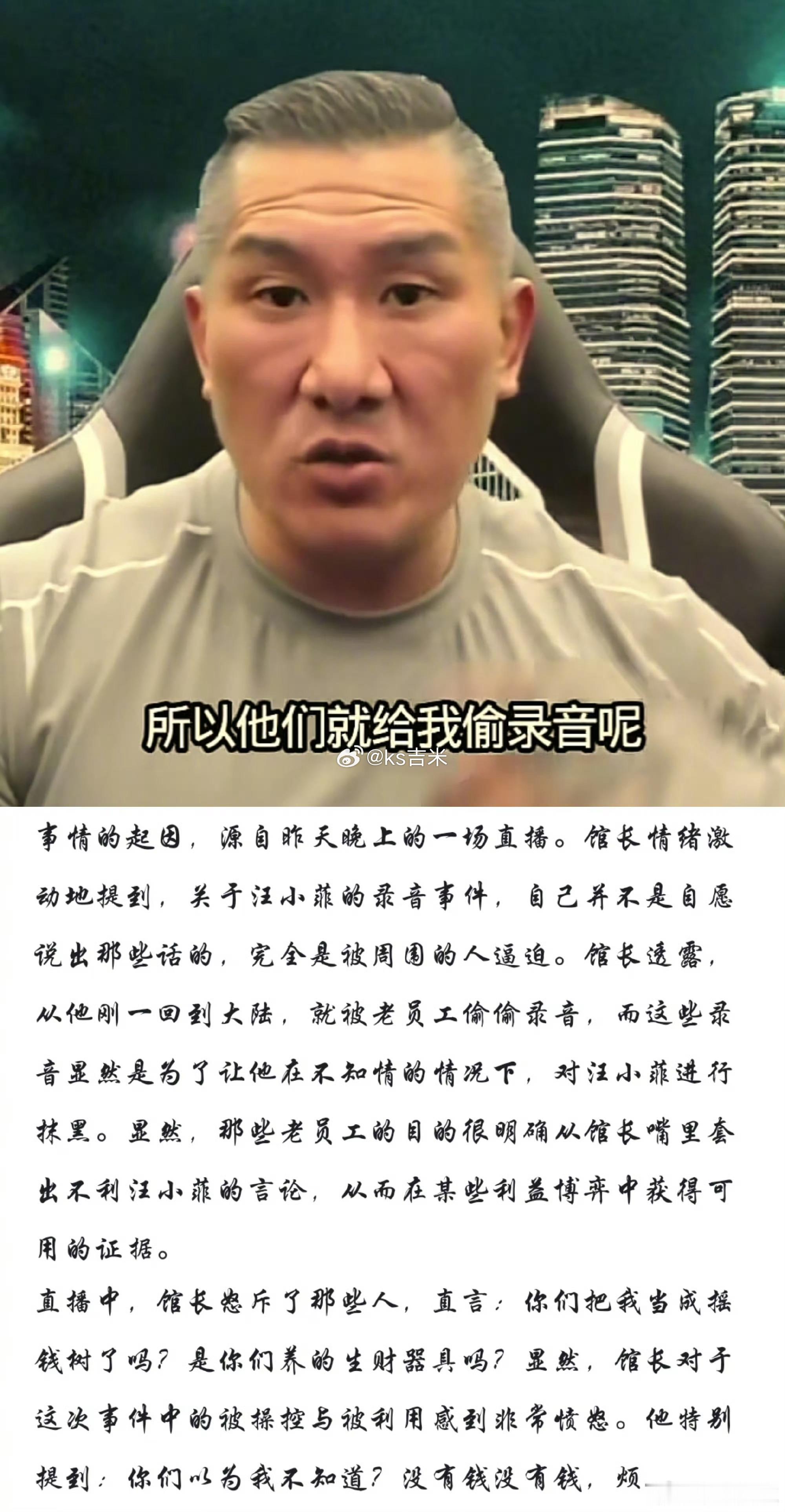 台湾网红馆长直播回应私下背刺汪小菲:当时被老员工勒索,说汪小菲坏话是因为被问烦了随口说的。 ps:为了流量,也是口是心非了!