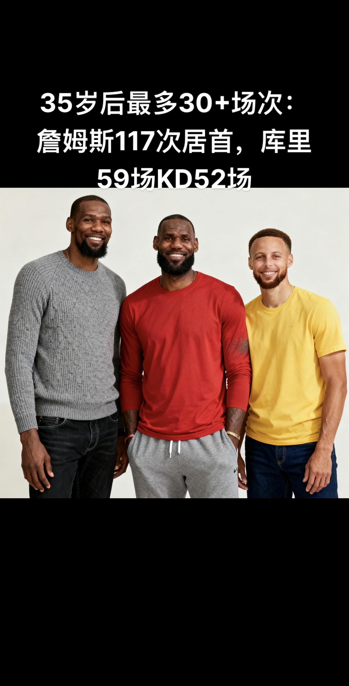 不过这和2024年底的数据媒体Bron Muse统计的有差异,当时詹姆斯该数据为118场,库里45场、杜兰特38场。出现变化是因为2025年赛季推进,库里和杜兰特又多次砍下30+,场次随之累加,进一步体现了这几位球星在生涯后期依旧保持着顶尖的得分能力。库里詹姆斯杜兰特来nbamrd先生