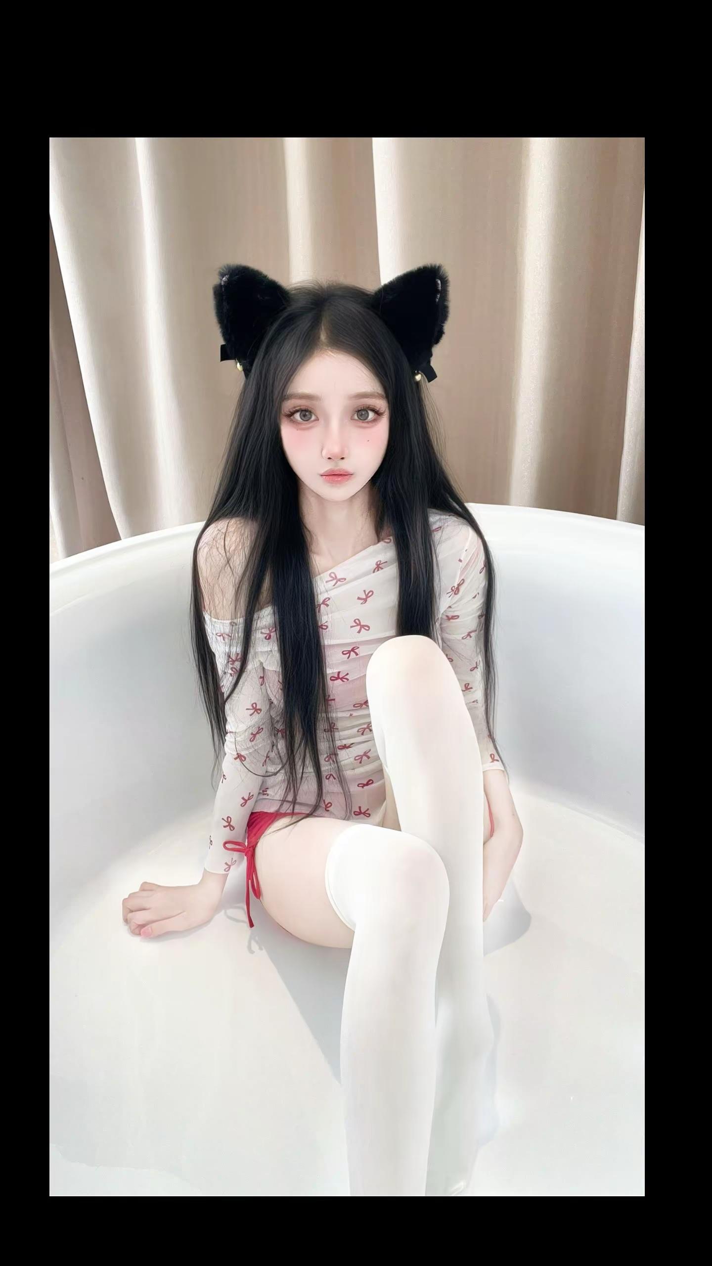 在雅致的浴室空间里,她化身清甜猫系少女。纯白毛绒猫耳俏皮灵动,蓝灰格纹...
