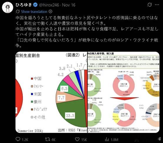 日本政客高市早苗在台湾问题上的挑衅言论,遭到日本网红西村博之的公开斥责,其帖文百万级传播量背后,是日本民众对右翼非理性行径的担忧。台湾问题是中国核心利益,任何干涉行径都注定徒劳,而日本与中国深度绑定的经贸现实,更容不得政客肆意妄为。西村博之所言直击要害:日本粮食供应依赖中国化肥,高科技产业离不开中国稀土,旅游业、餐饮业也深陷对华供应链。数据早已证明,中国稀土供应维系着日本汽车、电子产业的命脉,一旦断供,相关行业年损失将达数万亿日元。右翼政客的挑衅本质是政治算计,却可能让日本经济付出惨痛代价。时代早已不是零和博弈的战场,相互尊重、互利共赢才是正道。日本当摒弃极端情绪,正视历史与现实,否则只会在挑衅中自断后路,让民众为政客的虚妄买单。