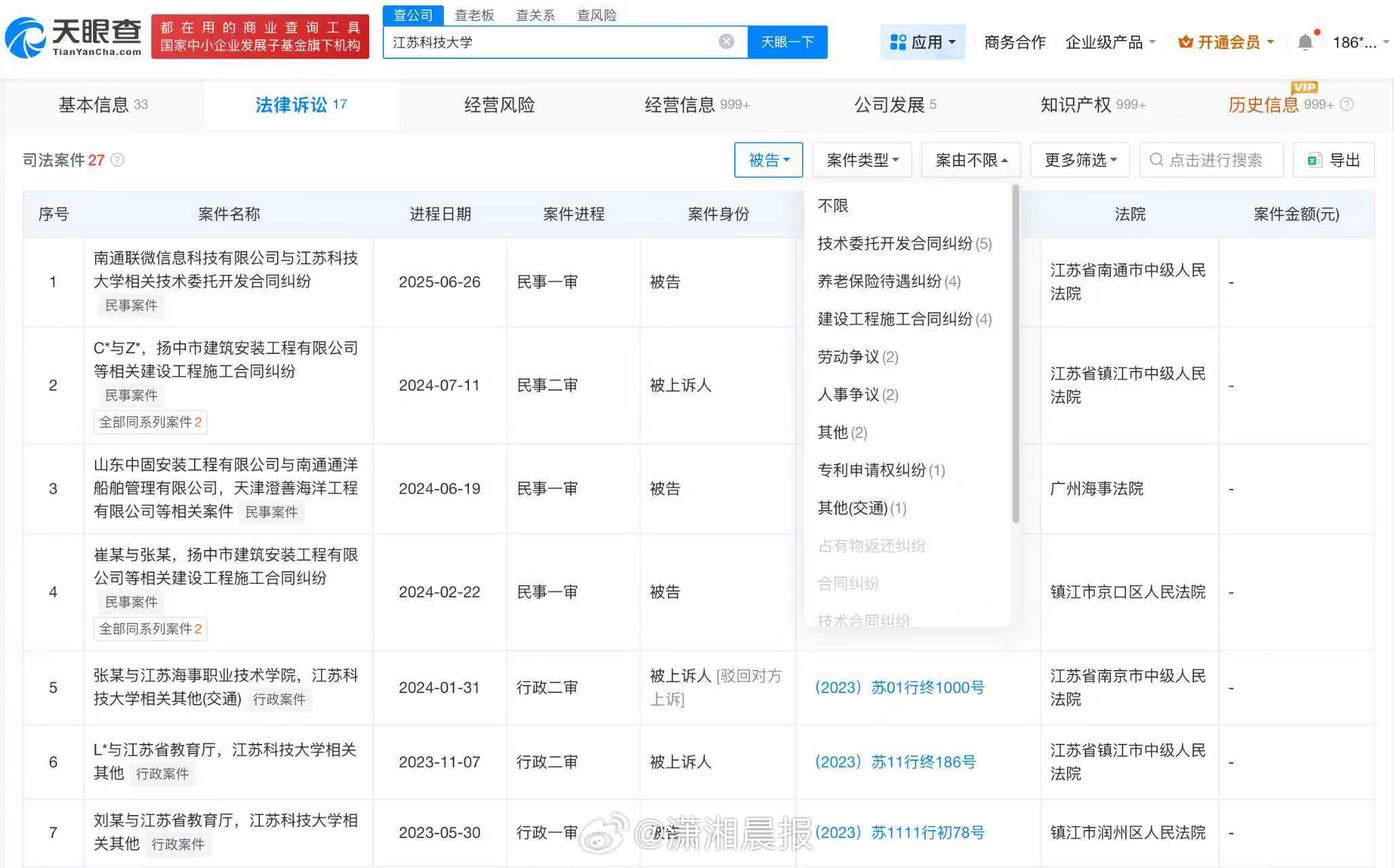 近日,江苏科技大学教授郭某被指简历造假、侵占国家科研经费等问题引发关注。随后,江苏科技大学对网络平台上传播关于郭某学术造假的相关消息发布通报,认定郭某存在严重学术不端行为,已经按规定解除了与郭某的聘用协议,并向公安机关报案。 记者查询天眼查App显示,涉事江苏科技大学法定代表人为嵇春艳,开办资金约24.6亿人民币,宗旨和业务范围包括培养高等学历人才,促进科学技术发展等。天眼风险信息显示,该学校曾涉及多起法律诉讼,案由涉及技术委托开发合同纠纷、劳动争议、人事争议等。