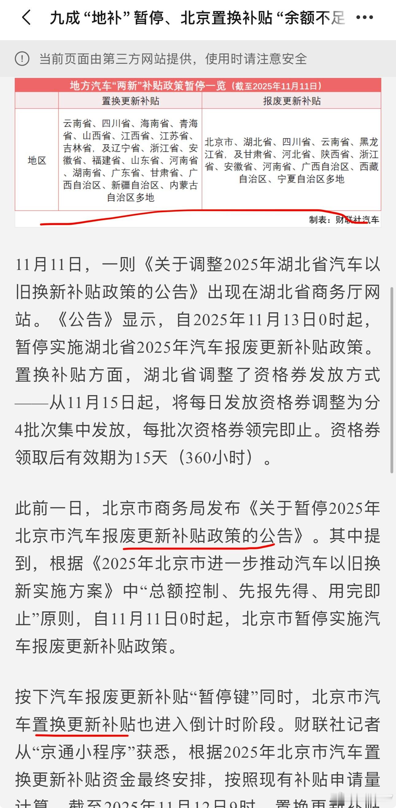 随各地陆续暂停补贴,个别地方新车订单也在逐渐减少,观望的消费者增多;北京市场因补贴暂停新车订单进展十分缓慢。2025年初各地补贴政策多是在一月中下旬推出,对新车销售市场有所影响;预计2026年初,补贴切换叠加新能源购置税恢复按5%征收时,也会对新车销售市场有一定的影响。