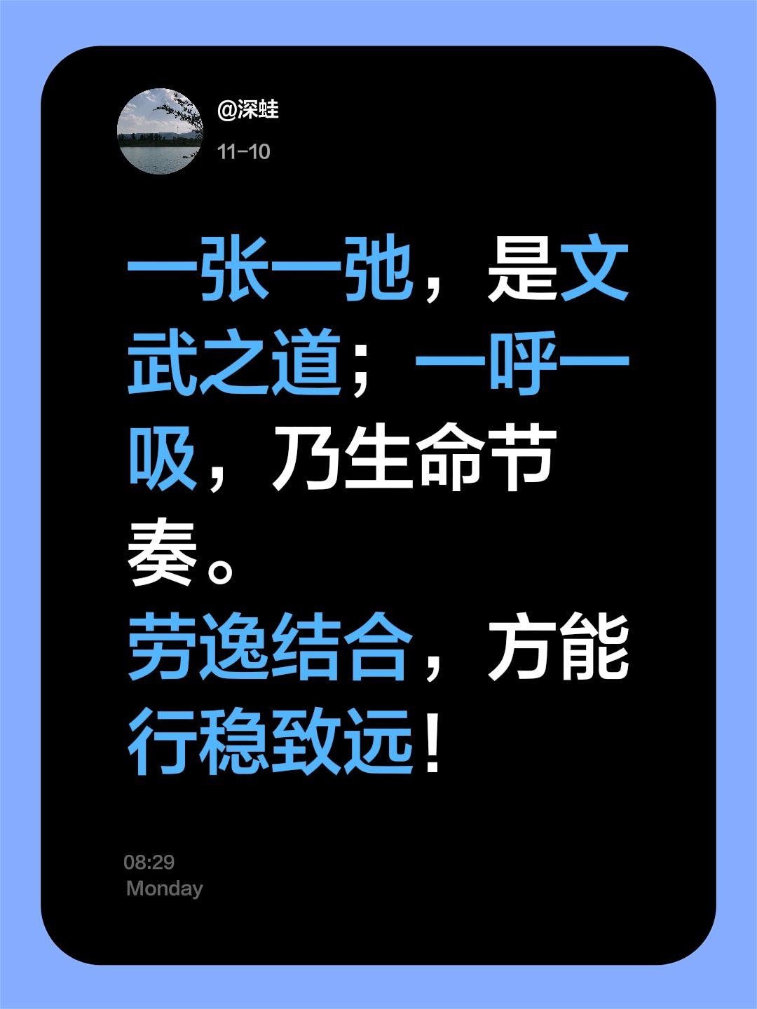 一张一弛,是文武之道;一呼一吸,乃生命节奏。 劳逸结合,方能行稳致远!