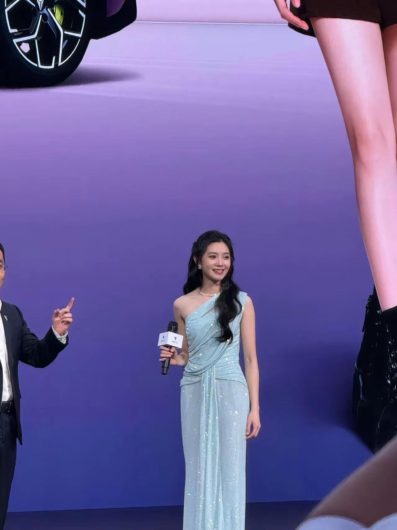 刘浩存晚上竟然穿蓝色的,等等,不是深蓝L06代言人,深蓝L06后面还有品牌大使,