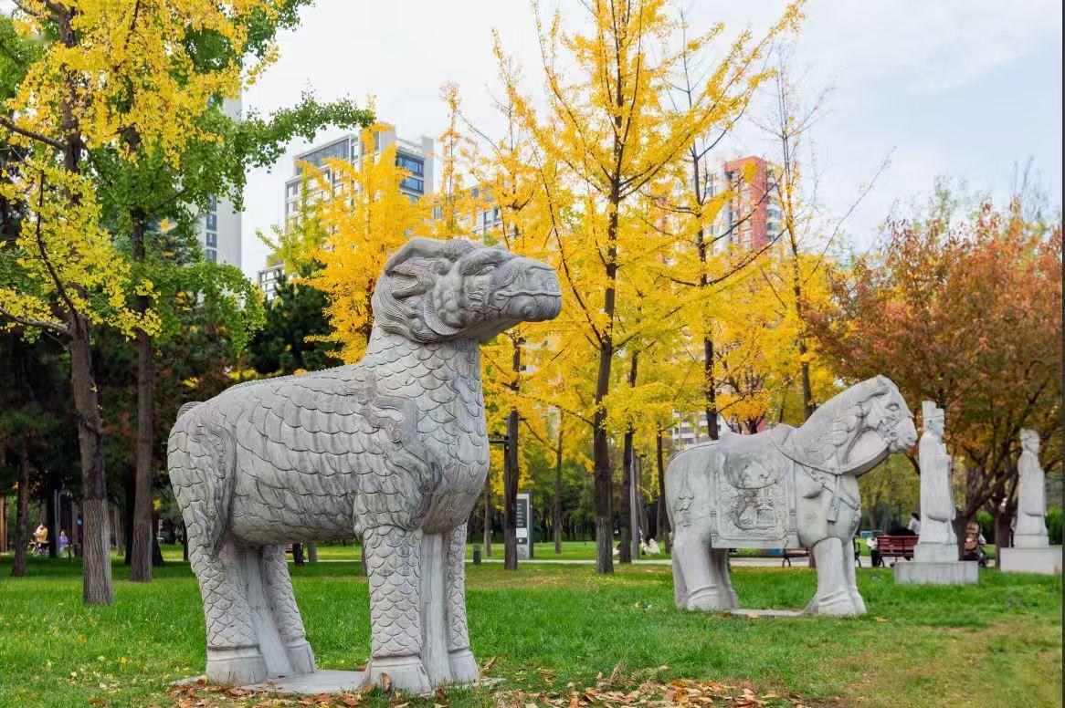 分享你身边的秋色秋光裹着银杏的金,落在石兽的鳞纹上。它与鞍马静立草坪,任城市的风穿过枝桠——旧时光的纹路,正和这一季的暖黄,一起嵌进公园的午后。
