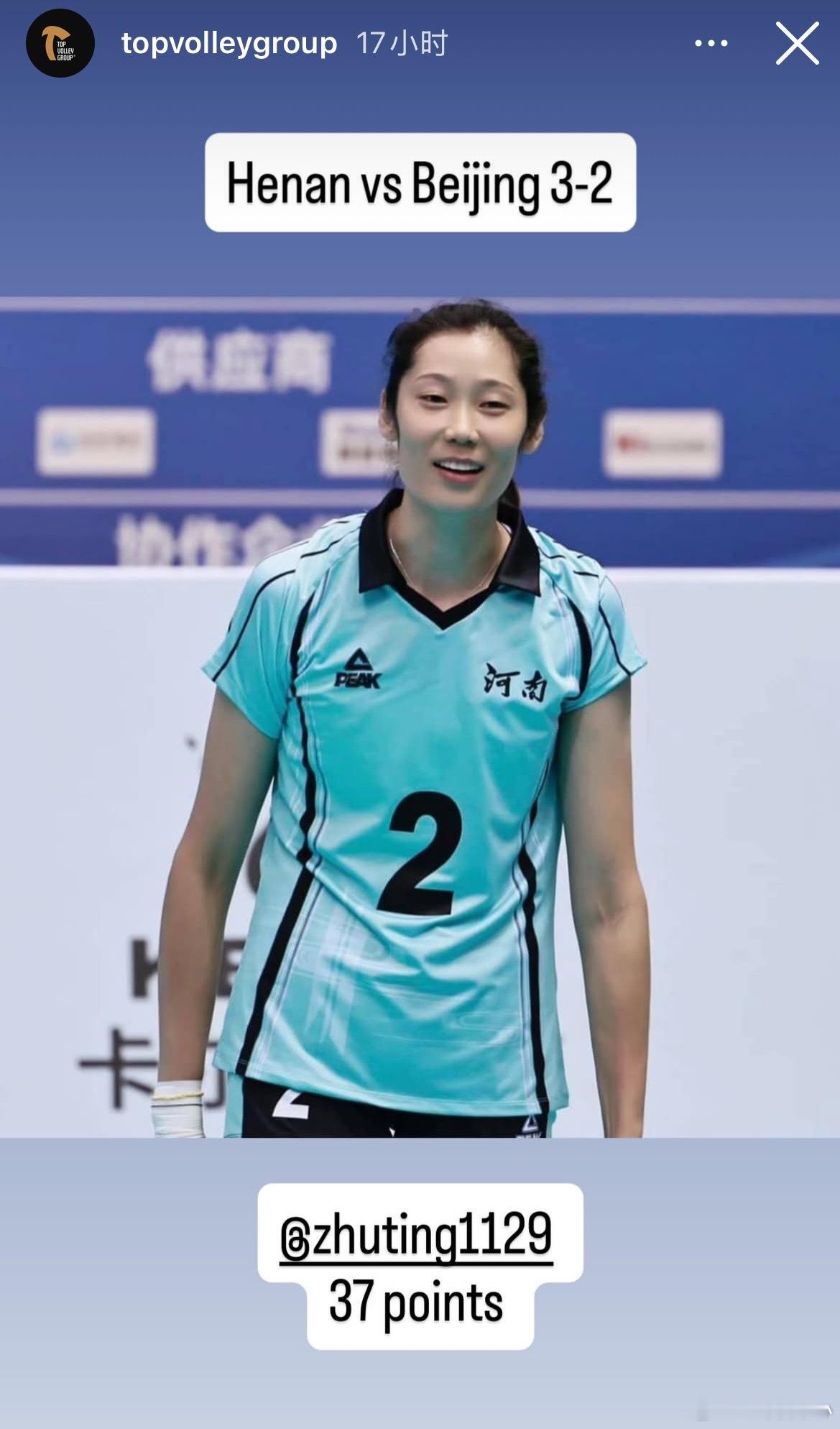 朱婷经纪公司topvolley报道了朱婷全运会37分