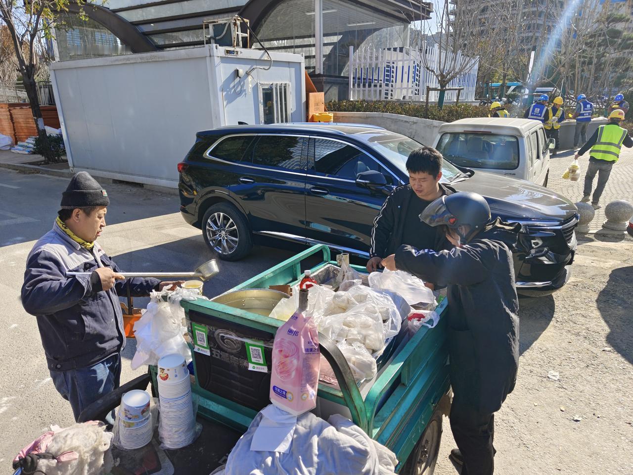 路是他们筑,楼是他们盖,地铁是他们建。他们的餐天,蓝天是天花板,大地是桌椅板凳,三轮车是他们的流动伙房。他们很满足,能够有地方劳动,有地方售出体力,换回养家糊口的工钱,便是快乐!今天是个好日子,11月19日,祝福他们的劳动营生要要要久!