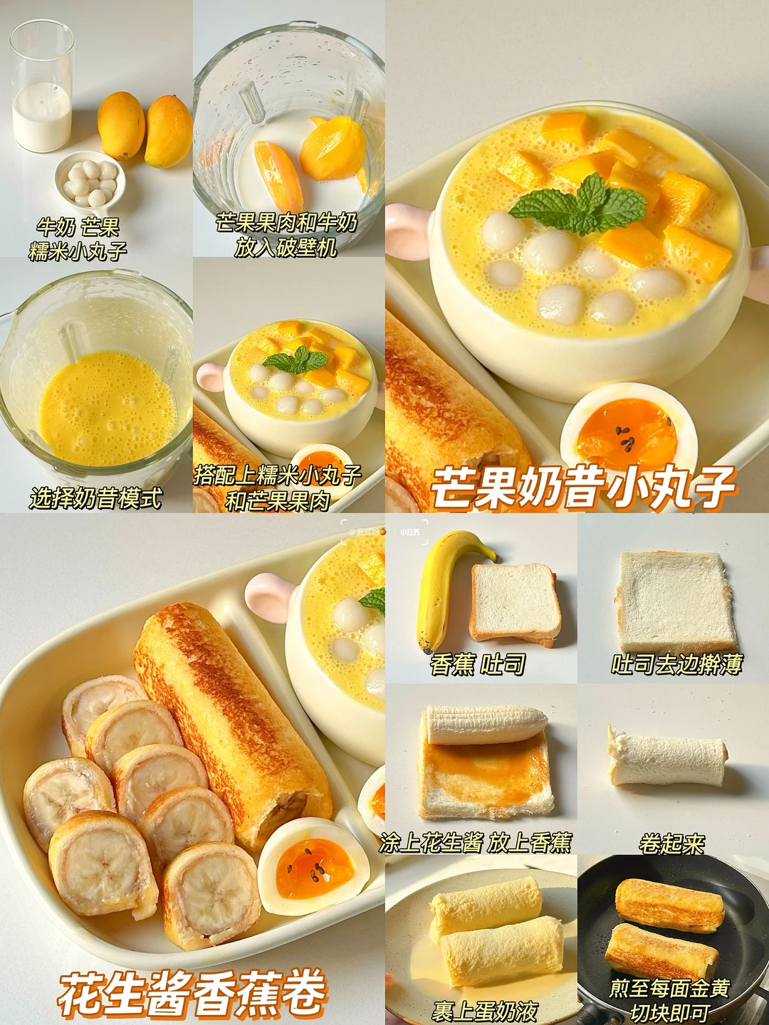 🍌香蕉吐司卷+芒果奶昔小圆子🥭