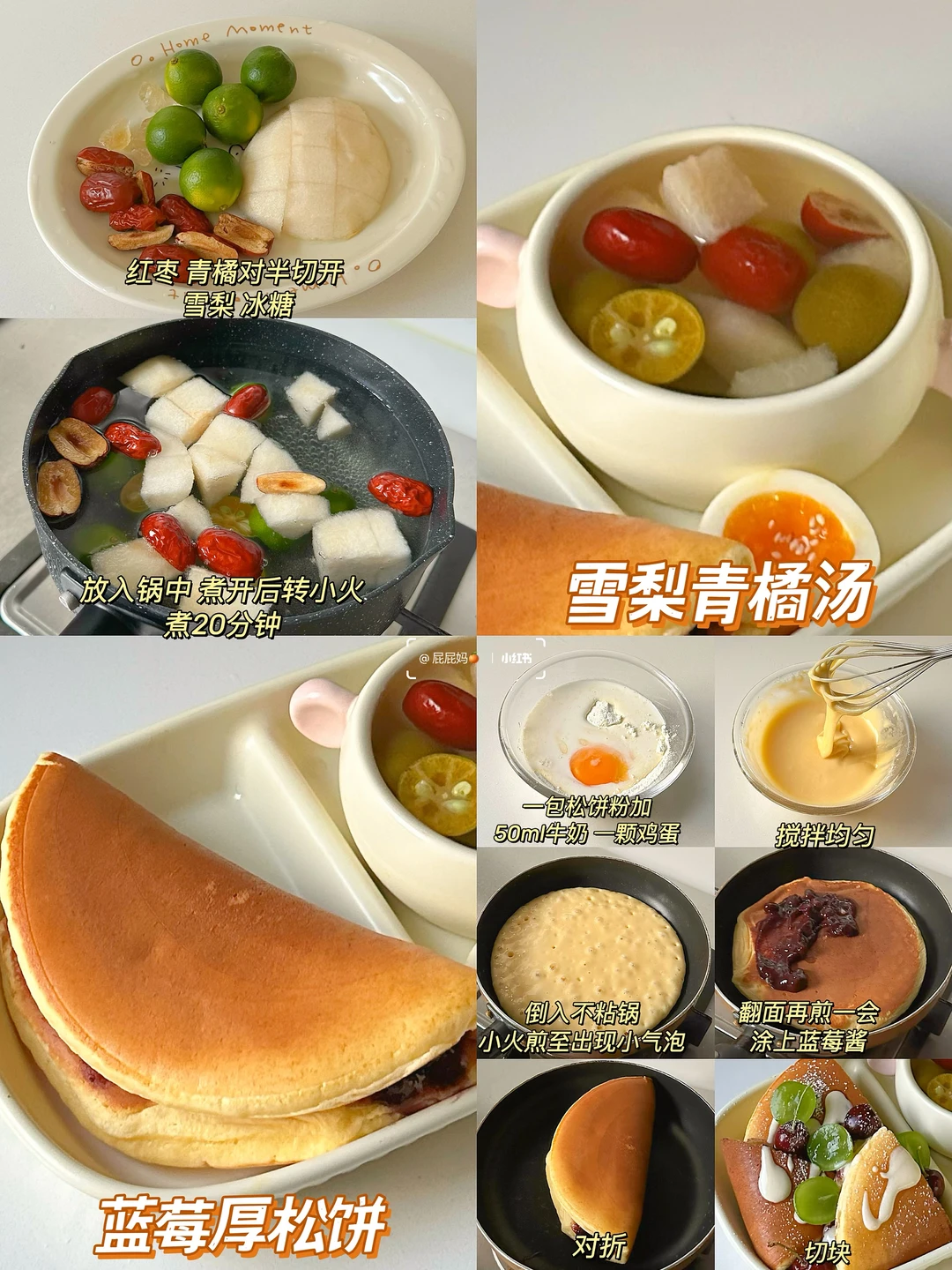 🫐蓝莓厚松饼+雪梨青橘汤🍐