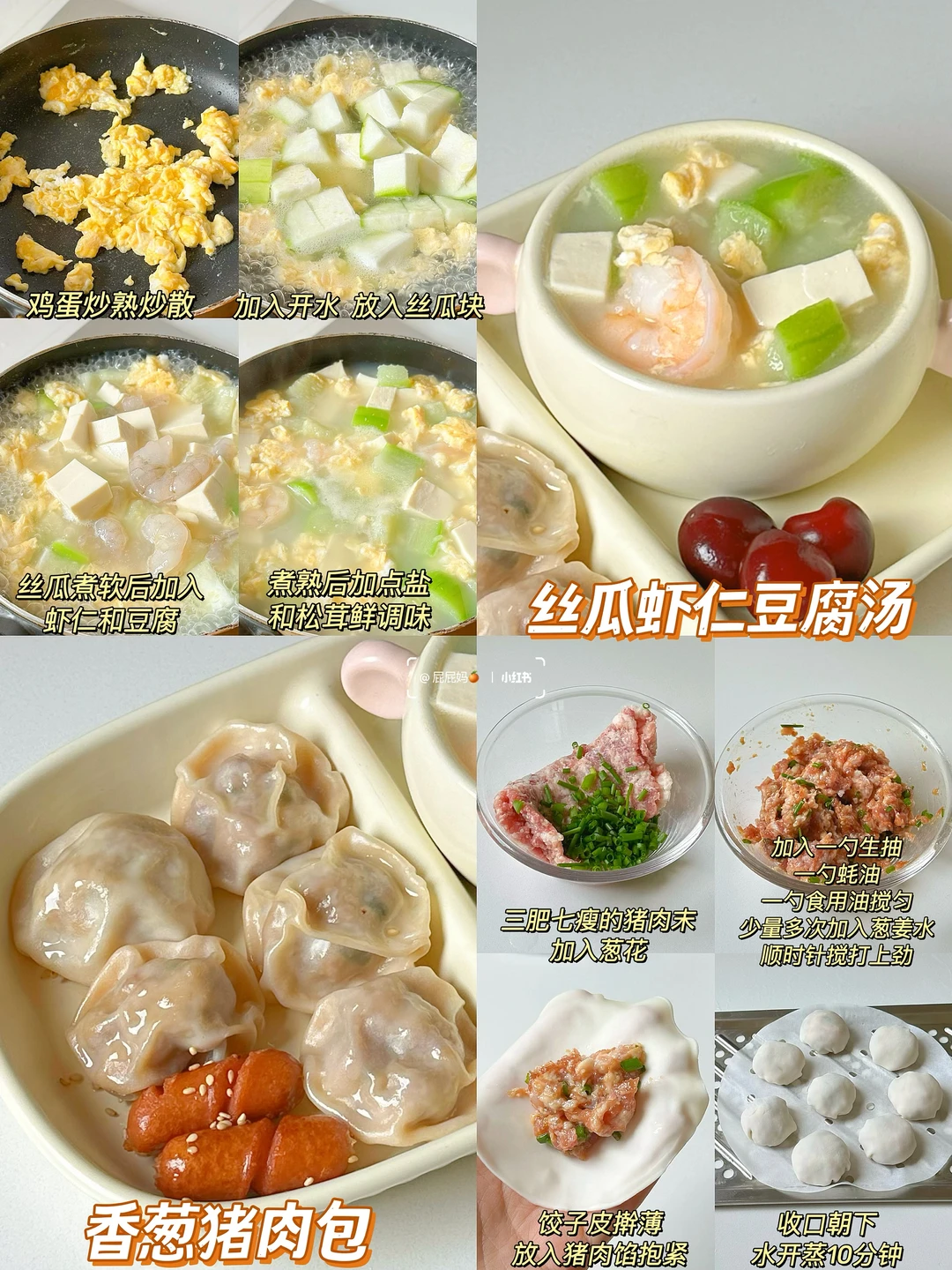 🧄香葱猪肉包+丝瓜虾仁汤🦐