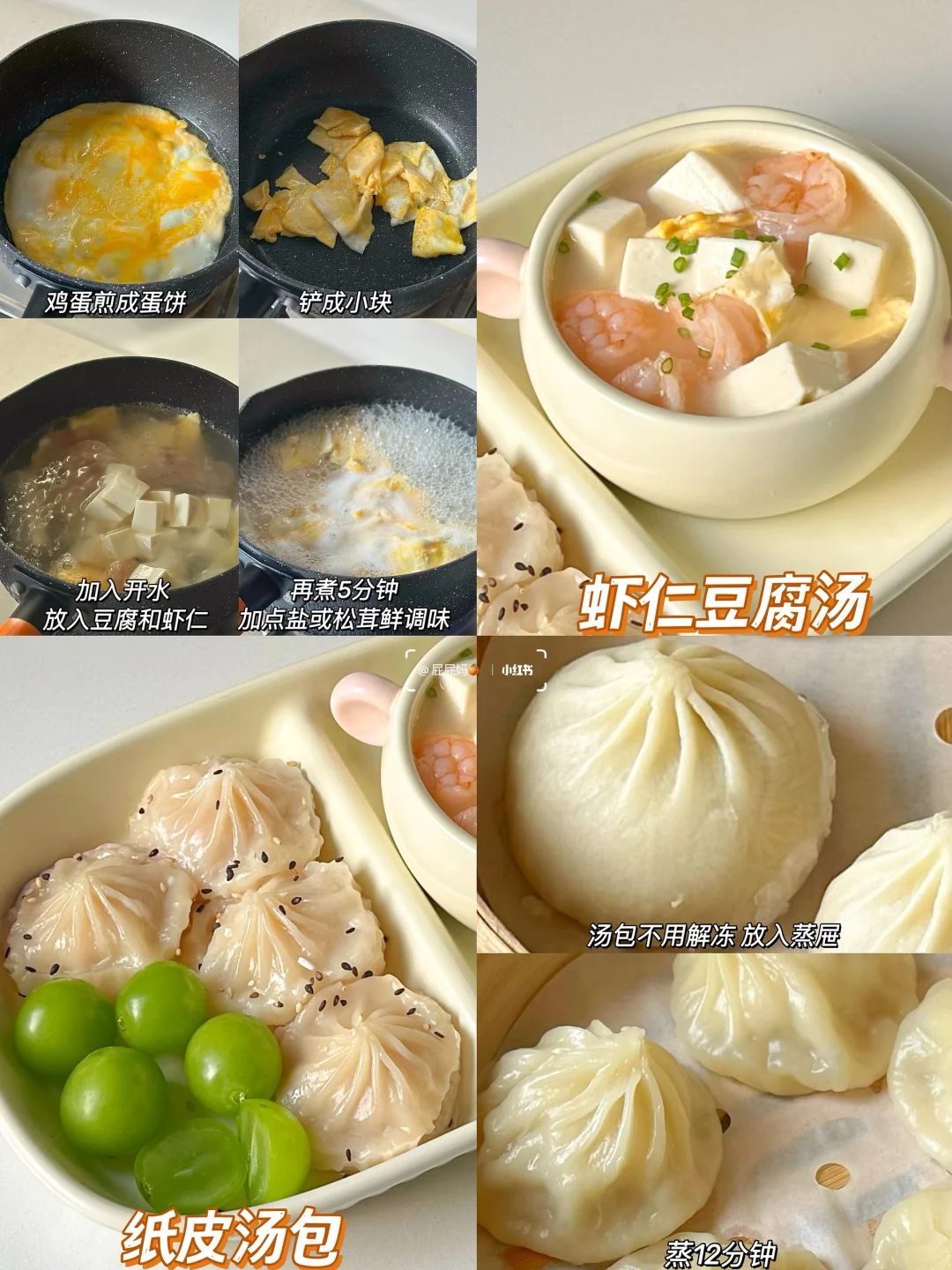 🥠纸皮汤包+虾仁豆腐汤🍲