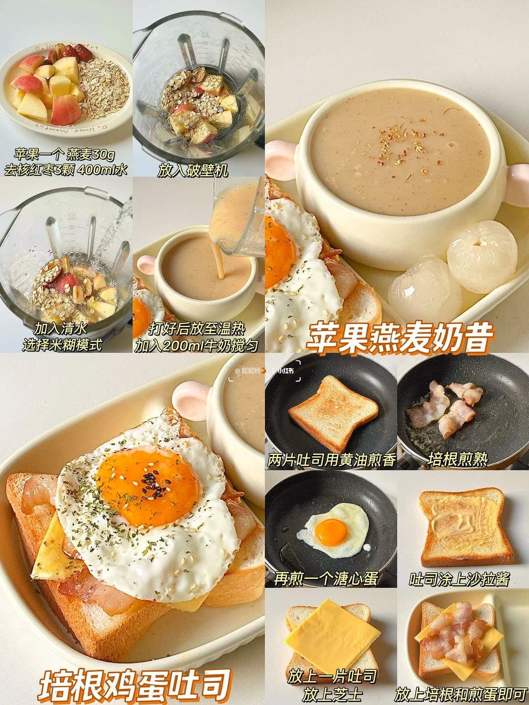🥪培根鸡蛋吐司+苹果燕麦奶🍎
