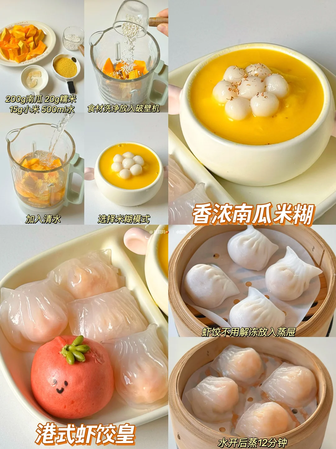 🍤水晶虾饺+香浓南瓜米糊🫕