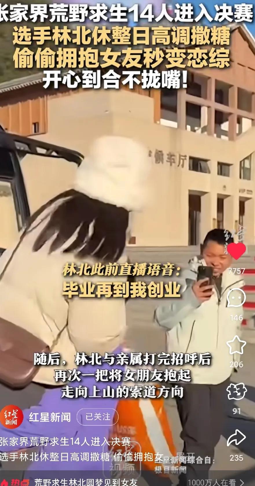 看到林北女朋友来了,我不意外 林北抱起女朋友举高高,我也不意外 谁能想到,他竟是看背影认出了女友,说大一就在一起了,这期间经历过创业等等,生活一直起落落落落落,而女友这几年一直陪着他。 他女朋友很好了,这么多人她也没有娇情,也没有因为不好意思什么的不给抱。 两个人见面后就一直牵着手,记者采访女朋友心情,她说林北瘦了后,回到了以前最帅的时候。 仔细观察,林北女友竟然还比他高,据说女友也比他大,林北上学期间,女友还挣钱给他。 内娱男明星看看吧,人家饿那么久还能扛得起女朋友一路跑[泪奔],他两真的都是生理喜欢 ,很久不见就要抱抱真美好。