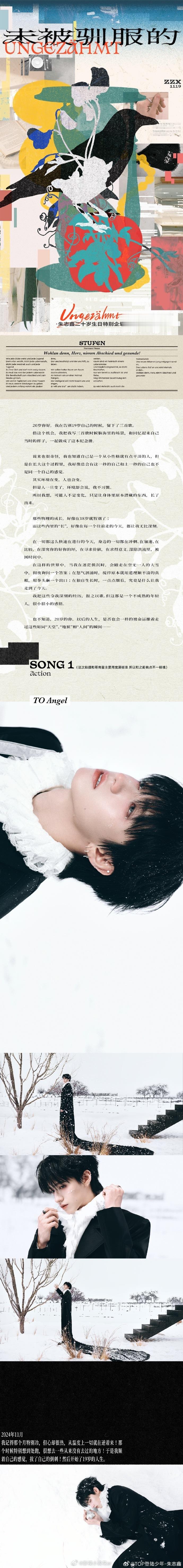 19岁的馈赠是3首动人旋律,20岁的约定在纪念册里,朱志鑫的成长从未缺席。
