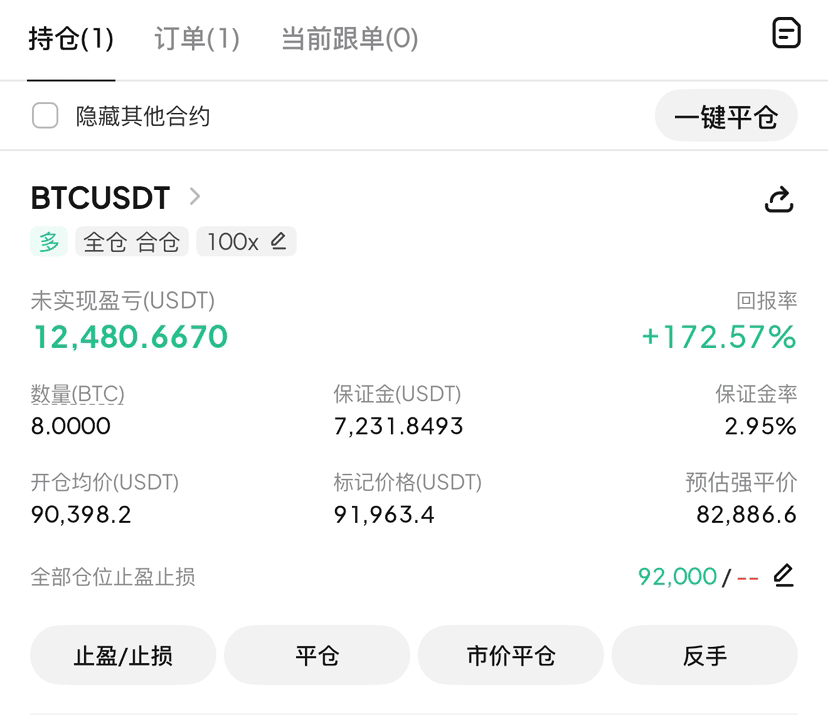 现在这市场情绪太极端了,全是恐慌!这时候大家千万稳住,必须做好防守,别掉进庄家的圈套里!白天喊的91500多,500点的防守无奈打损;但我在低位90400附近重新干了多,到现在已经有1000多点。