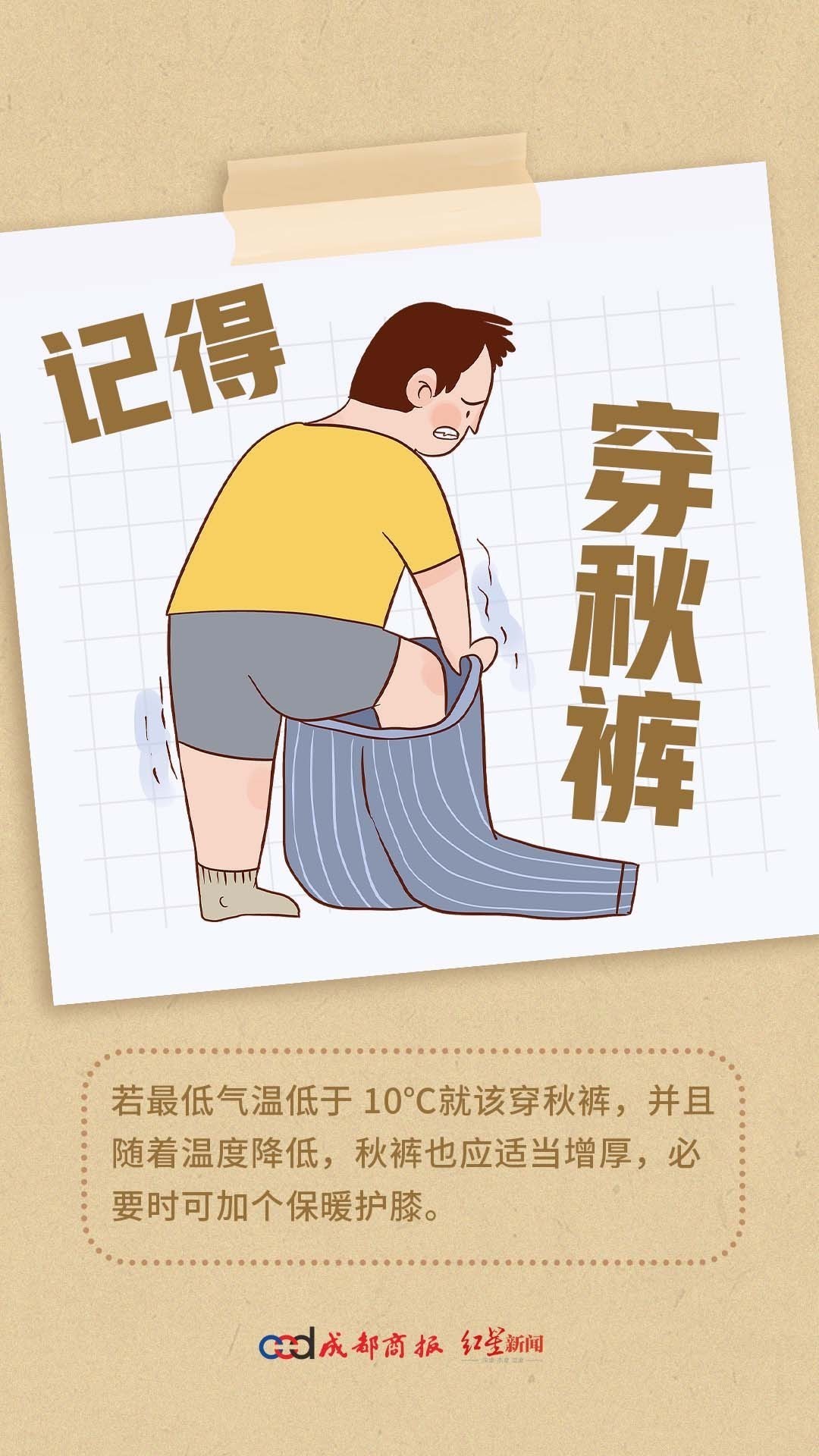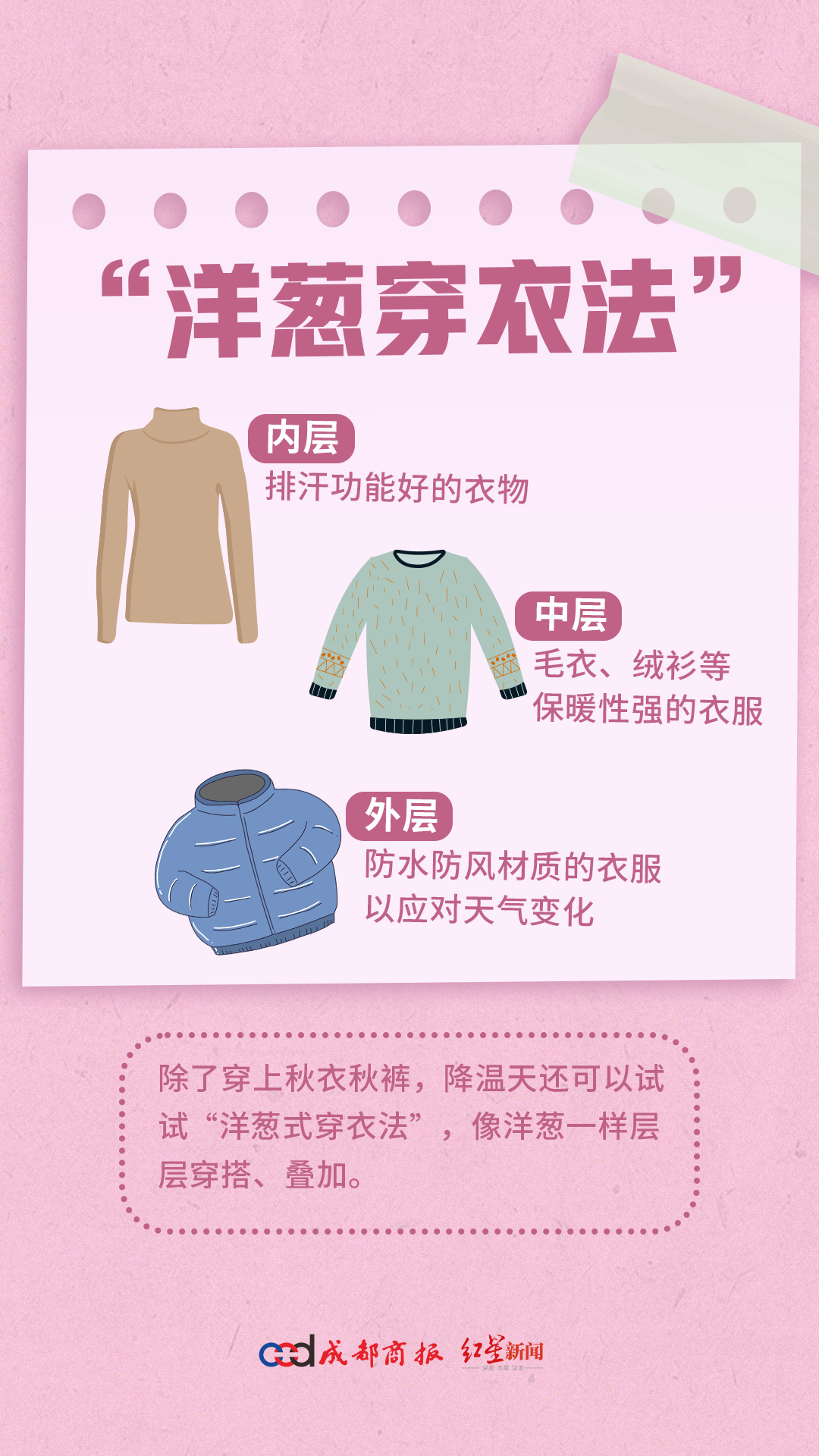 天气越来越冷,如何正确保暖?记得穿秋裤,有网友称“”。冬天推荐洋葱式穿衣法,根据温度变化及时增减衣物。别再露脚踝了!“秋衣塞到秋裤里,秋裤塞到袜子里”。戳图了解↓↓转给你关心的TA!
