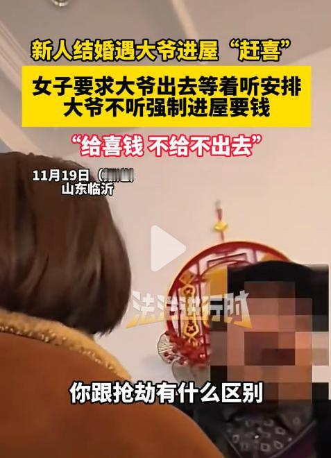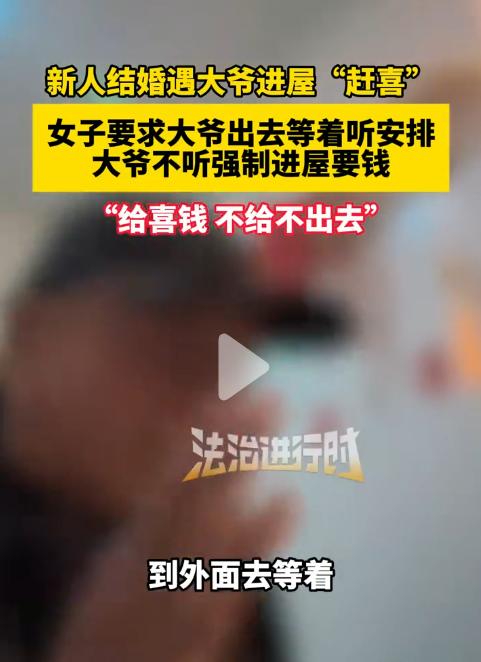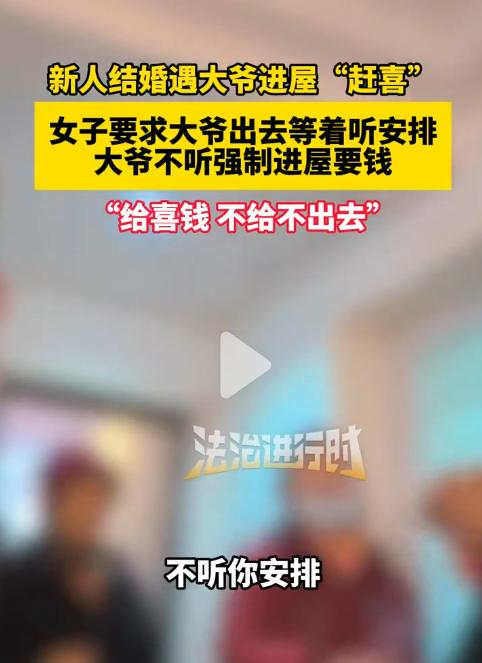 大爷强闯屋内赶喜,这要钱的操作,看呆众人 事情起因是一对新婚夫妇在村子里办喜事