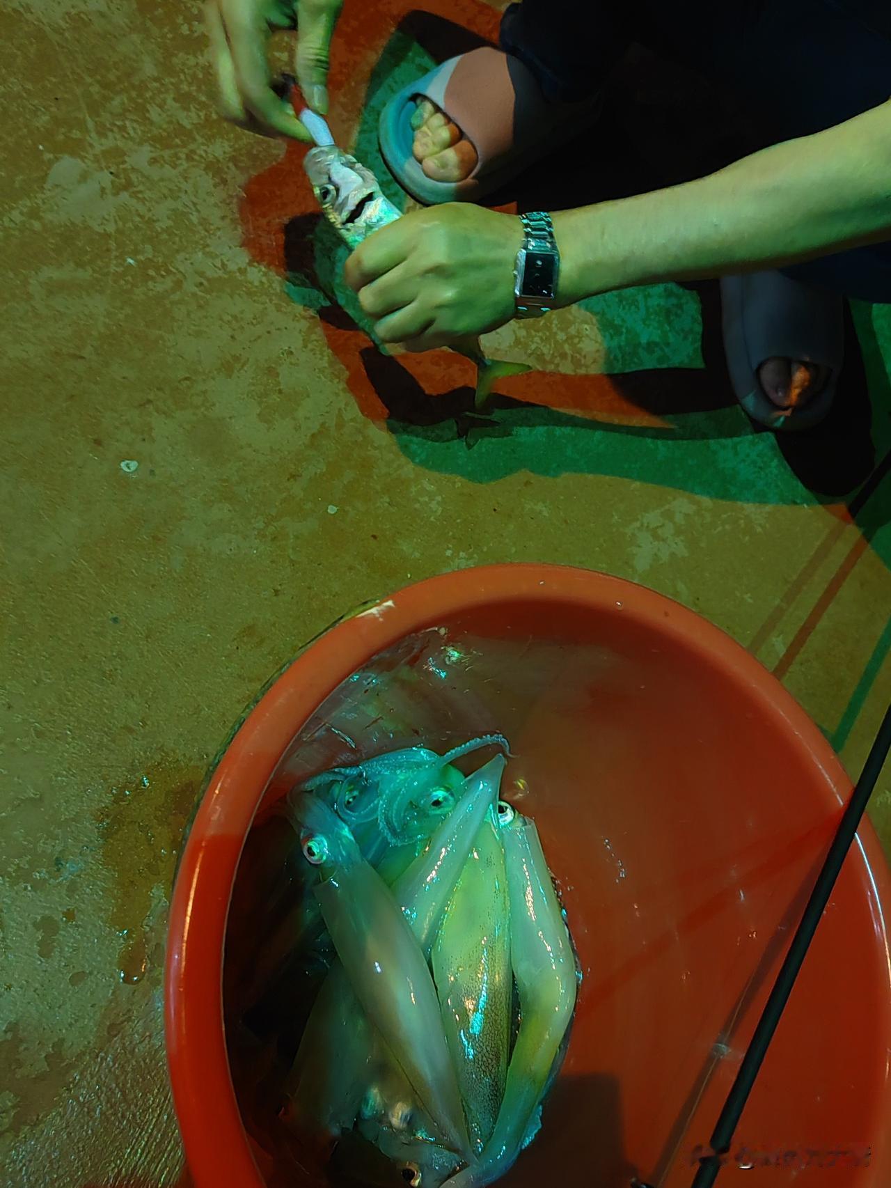 我们船舶上午就到了澳洲装货港锚地了,船员们忙活了一天,终于等来了属于自己的时刻。 吃过晚餐,船员们纷纷走回自己的房间,休息一下,夜色渐渐的暗了下来,兄弟们走出房间,去甲板上寻找属于自己的自由与快乐。远处的点点灯光与天上的繁星交相辉映,现在的澳洲虽然是冬季,但是穿着短袖在甲板上还是有一丝丝的凉意。 一只,两只,三只,不一会儿,就钓了这么多,虽然今天的海风有点大,但也阻挡不了船员们寻找的乐趣决心。 我不喜欢钓鱼,我问一个哥们,我说你这么喜欢钓鱼吗?他说,钓鱼不在乎钓的多与少,在乎的是钓鱼的乐趣,是与大海博弈的悸动,是疲劳背后的松弛,是星光点点下的乐趣! 明天,这些小精灵将会成为我们餐桌上的美食,想想都要流口水了!