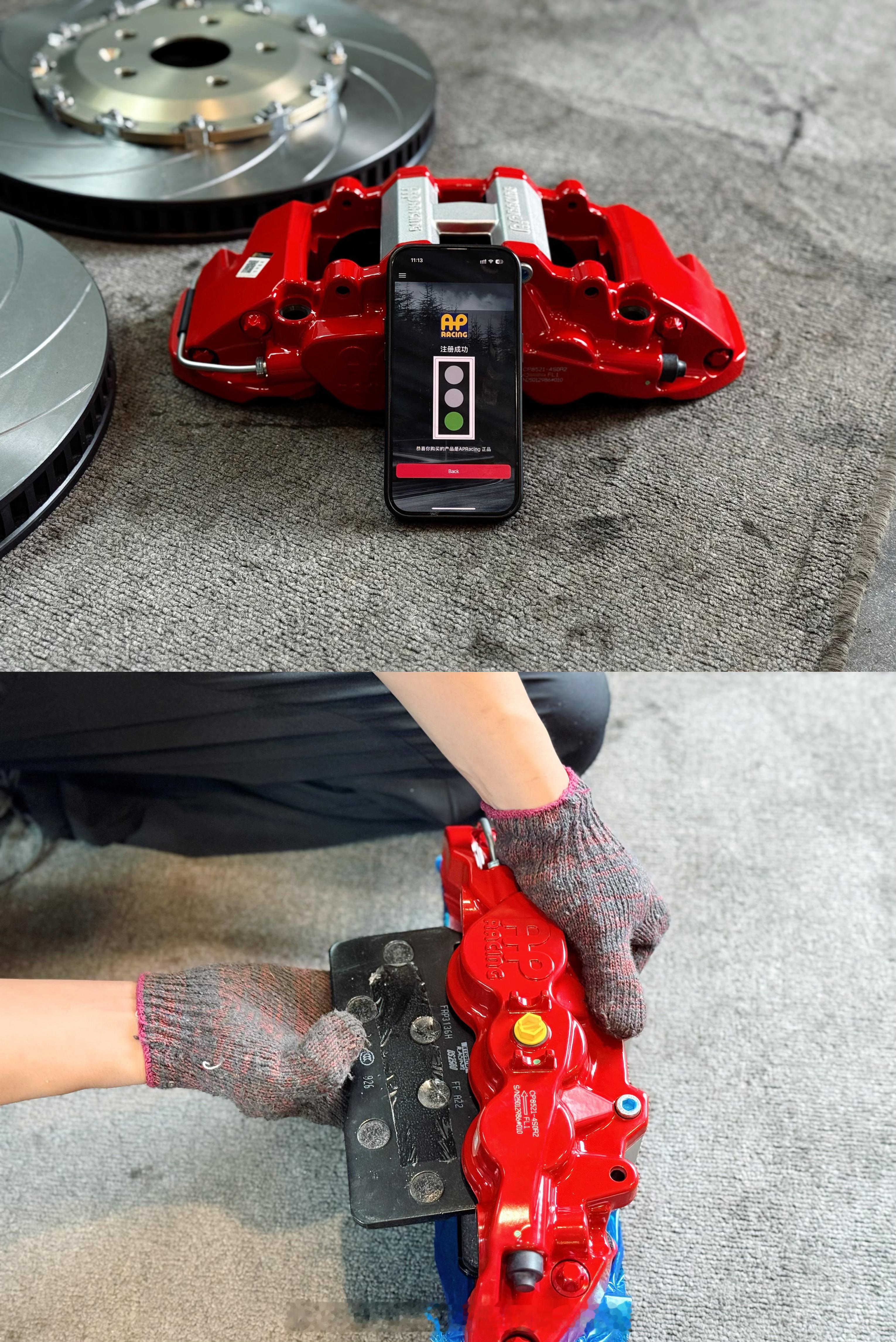 理想L6制动升级:🇬🇧AP 85系列六活塞,KBT官方二维码验明正身,脚感线性有力踩多少来多少,刹车冗余量充足驾驶更有信心。