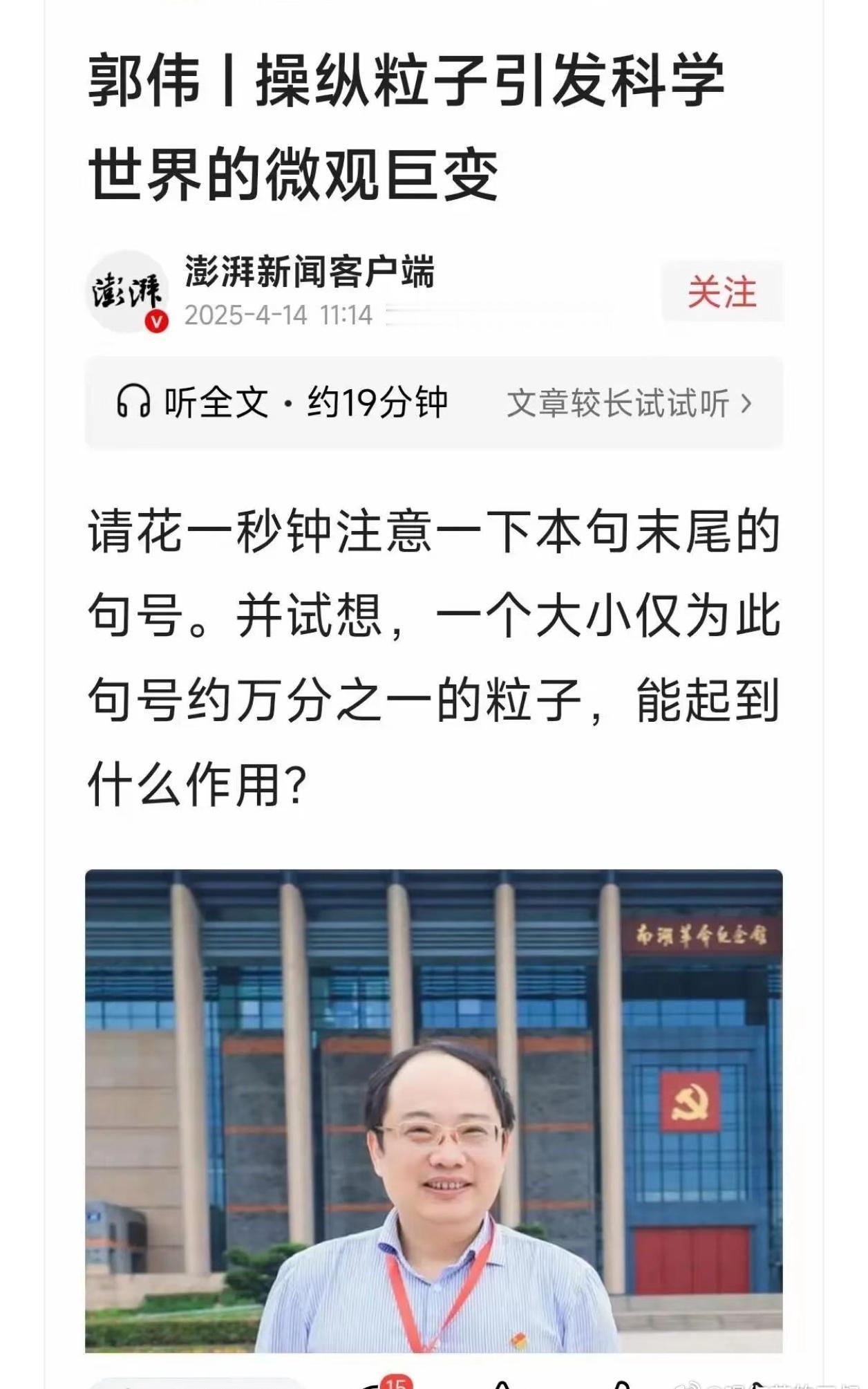 郭伟,还有很多正经媒体给他背书,这个又算啥。 下次,再看到那个报道说,xx研究取得了多少成绩,开创多少新领域,都会条件反射,想到这些。