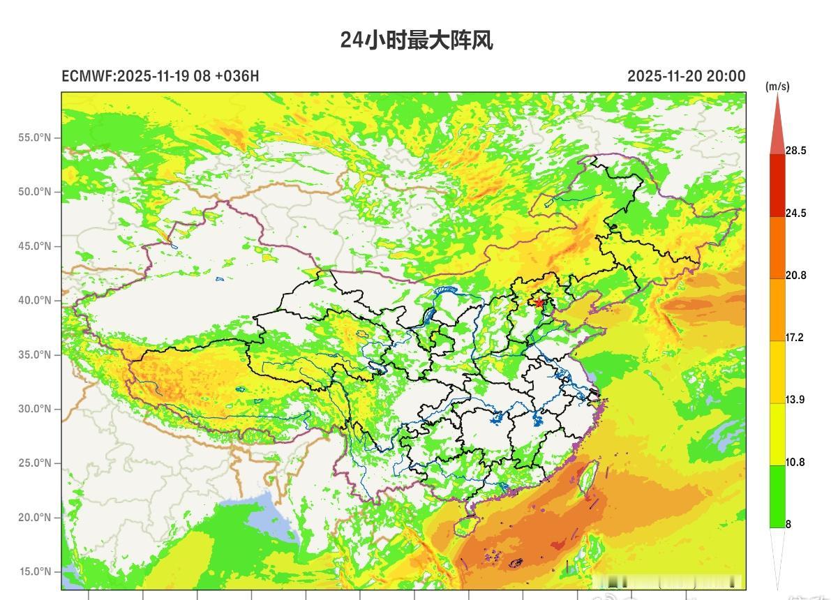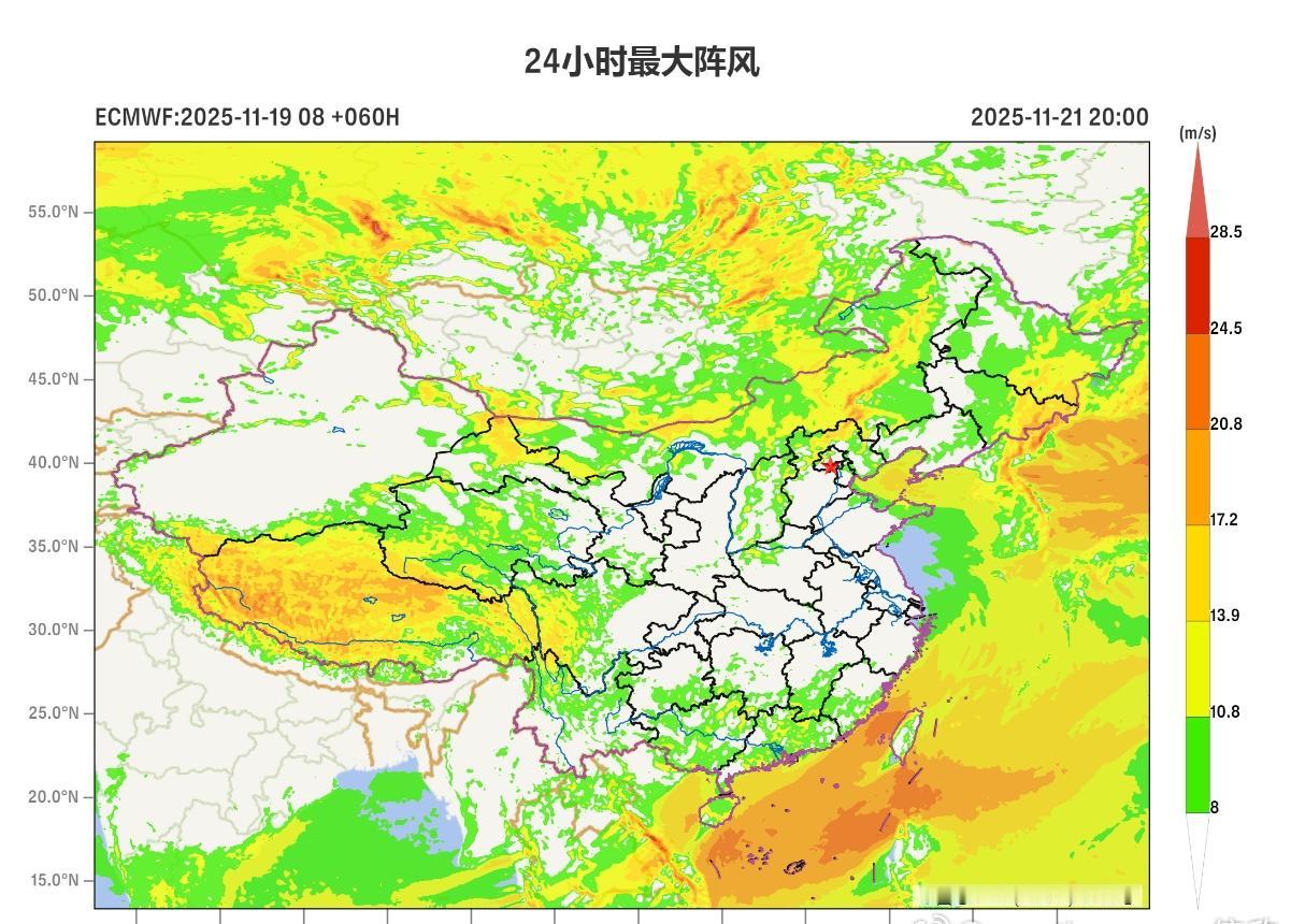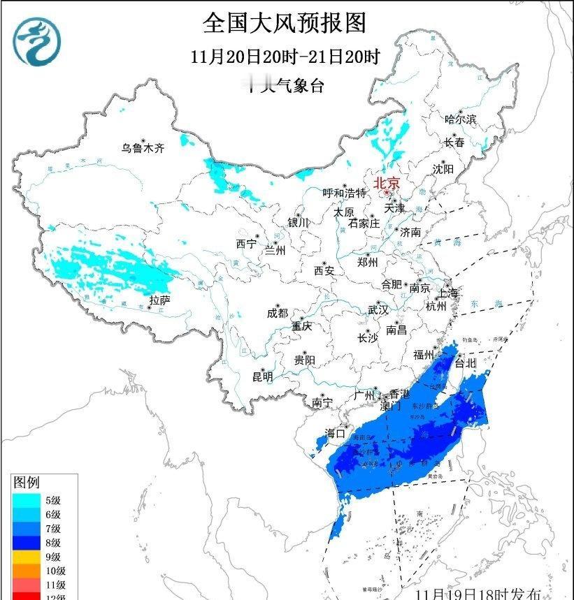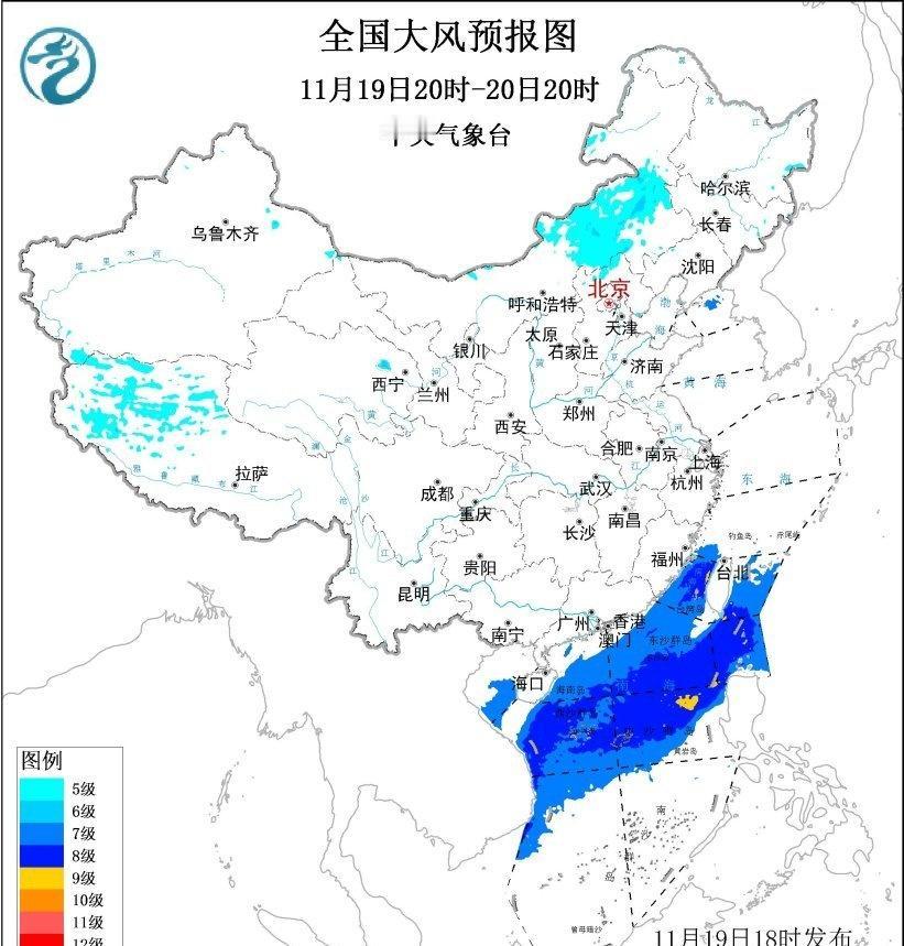 【大风】未来2天台湾海峡到南海北部和中部,还会出现7-8级大风,阵风9-10级。此外明天内蒙古中东部和西藏西部阵风也可达7-8级。