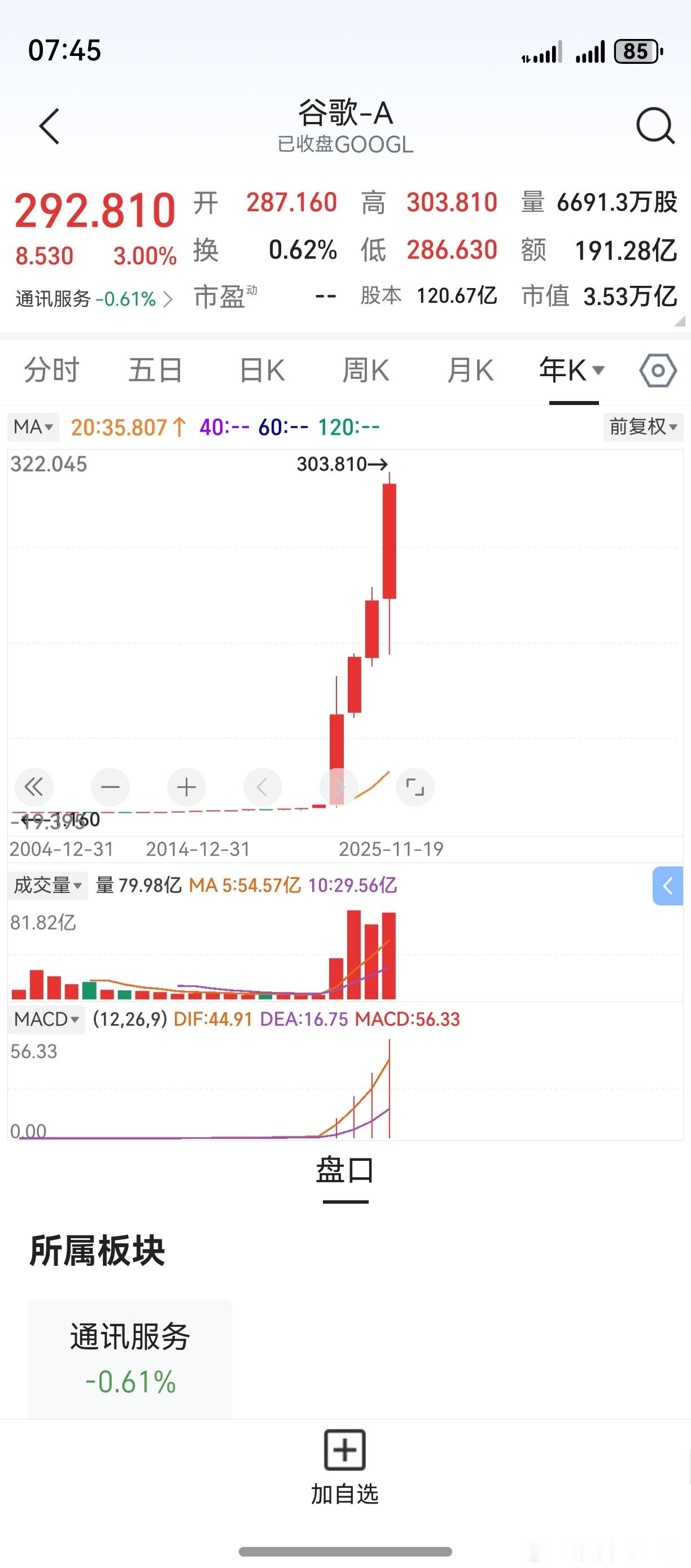 科技7姐妹,谷歌大涨4年。其人工智能运用,最先知道的是“阿法狗”。面向新兴产业未来产业,投资吃不了亏。希望在A股,同样适用。