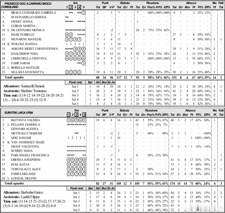 【科内利亚诺3-2布斯托,尼卡MVP】 意甲女排联赛新一轮,科内主场3-2布斯托,MVP尼卡18分(28扣15中2被拦2拦1发32个一传1失误)比分 25-23 , 28-30 , 25-14 , 25-27 , 15-10