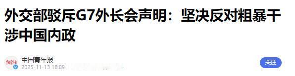 美国、德国、英国、法国、日本、意大利、加拿大发表联合声明,中国强烈反对。 11月13日的外交部例行记者会上,发言人林剑针对前一天G7外长会在加拿大发表的联合声明作出回应,直言其"罔顾事实、颠倒黑白",明确传递出中方的强烈不满与坚决反对。 这次,我们不惯着他们!战后数十年间,美、德、英等国凭借经济与军事优势,几乎垄断了国际规则的制定权。 从贸易关税的核算标准到地缘政治的框架设计,基本都由他们协商敲定,其他国家大多只能被动遵从。 这种"少数人说了算"的行事逻辑,早已内化为他们的行为惯性。 但如今的世界早已不是当年的格局。 中国这些年的发展有目共睹,经济体量稳居世界第二,拥有全球少见的完整产业链,不少科技领域也实现了从跟跑到并跑的突破。 与此同时,越来越多的发展中国家开始抱团发声,不再甘心做规则的"旁观者",多极化趋势如潮水般不可逆转。 在这样的背景下,G7集体发表涉华声明,本质是老霸主们眼见话语权被稀释,急于通过集体发声的方式强化存在感,试图将松动的旧秩序重新稳固。 剖析声明中针对中国的具体论调,每一条都站不住脚,字里行间都透着双重标准的虚伪底色。 以台湾问题为例,这是国际社会公认的中国内政,联合国早已明确承认世界上只有一个中国,台湾是中国领土不可分割的一部分。 可G7偏偏将这件中国内政定义为"地区风险",核心目的就是借该议题干涉中国内政,给"台独"分裂势力释放错误信号。 这种干涉别国内政的做法,放在他们自己身上绝难容忍,换到中国身上却换了一套说辞,公平二字无从谈起。 在南海问题上,G7的操作同样缺乏合理性。 除日本与南海稍有关联外,其他成员国均与南海事务并无直接关联,却执意跳出来渲染局势紧张。 明眼人都清楚,南海局势总体保持稳定,周边国家早已通过对话协商建立起有效的管控机制。 他们之所以紧盯南海不放,无非是想为自家军舰频繁在南海活动寻找"合理"借口,维持在亚太地区的军事存在。 这种"非当事国比当事国更积极"的操作,正是霸权思维的典型延续。 他们一边对中国的国防政策指手画脚,一边却对盟友的危险行为视而不见。 美英澳构建的三边安全伙伴关系,计划向澳大利亚转让核潜艇技术,其中涉及的高浓铀丰度超过90%,属于武器级核材料。 这种操作无疑给核扩散埋下巨大隐患,国际社会普遍担忧会打开"潘多拉魔盒",可G7对此始终绝口不提,反而紧盯中国防御性国防政策说三道四。 这种是非不分的态度,根本没有资格谈论"国际安全"。 经济领域的双重标准同样毫不掩饰,这些国家为扶持本土产业,在新能源、半导体等领域投入大量补贴,可转头就指责中国搞"非市场行为",炒作所谓"产能过剩"。 他们心里很清楚,中国产业的发展依靠的是完整产业链和高效创新能力,绝非所谓的"不正当竞争"。 他们真正忌惮的,是中国在高端制造领域的突破会冲击其长期垄断的市场份额,因此才想用舆论打压的方式遏制中国产业升级。 中方的坚决反对,绝非一时冲动的情绪化表态,而是有扎实的实力与法理支撑。 从经济层面看,中国拥有超大规模内需市场,全球过半主要经济体都将中国视为最大贸易伙伴,这种紧密的经济纽带难以轻易切断。 在科技领域,新能源汽车、5G等领域的突破有目共睹,越来越多的中国技术标准获得国际认可。 在国际合作中,中国从不搞排他性小圈子,"一带一路"倡议秉持共赢理念,已得到一百多个国家的支持。 中国的反对立场,本质上是对公平国际秩序的维护,而非反对国际规则本身。 这些年中国一直在推动建立更公平的国际秩序,金砖国家扩容、上合组织深化合作,都是为了让更多国家参与到规则制定中来。 这种"大家的事大家商量着办"的治理理念,与G7"少数国家定规则"的霸权模式形成鲜明反差,这也正是G7感到焦虑的核心原因。 国际社会对此看得愈发清晰,G7的联合声明即便声势浩大,也无法逆转世界格局的演变趋势。 过去那种"七个国家就能左右全球走向"的时代早已落幕,越来越多的国家不愿再做"沉默的大多数",希望国际规则能真正反映多数国家的利益诉求。 G7若仍固守霸权旧梦,继续奉行双重标准、干涉别国内政,只会在国际社会中愈发孤立。