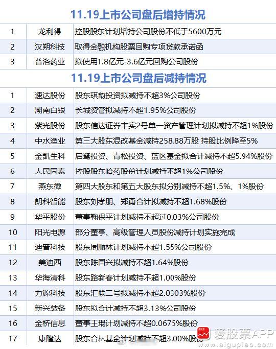 【11月19日增减持汇总】