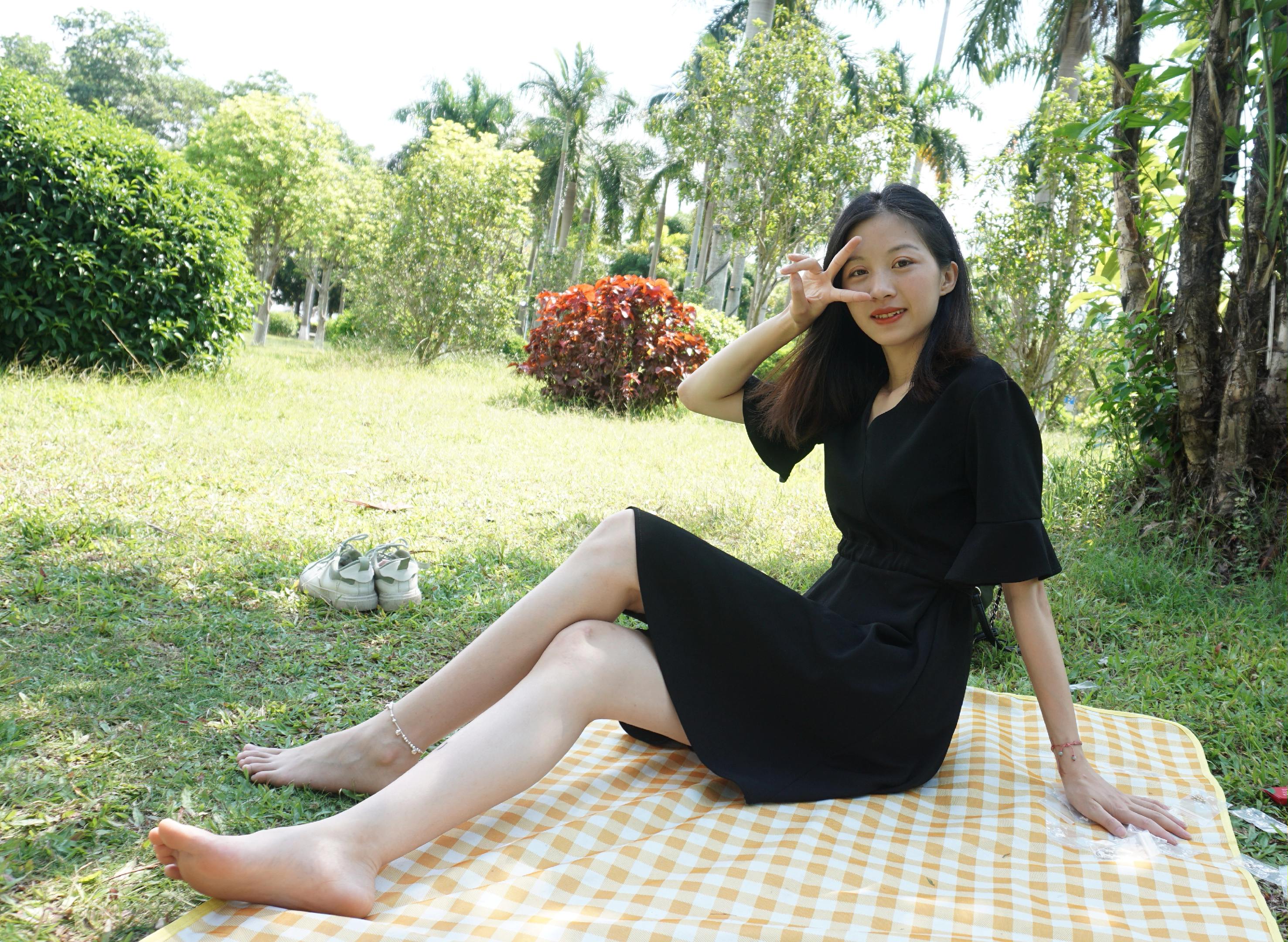 可爱的小脚丫新姿势公园景观清纯甜美女生拍照姿势户外摄影