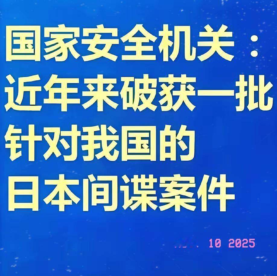 最近国家安全部公布了一批日本间谍! 日本间谍被中国国家安全部抓捕,日本当局始终不敢承认这些人的间谍身份,反而矢口否认曾派遣间谍。 就在11月19日,国家安全部微信公众号以《越线挑衅的"玩火者"绝没有好下场》为题发布评论员文章,直接证实破获了一批日本间谍情报机关针对中国的渗透窃密案件。这是官方首次集中披露针对日本间谍网络的收网行动,时机与内容都耐人寻味。 日本政府习惯性否认的嘴脸我们太熟悉了。半年前日本参议员山添拓在国会质询时,就曾拿出保存在日本防卫省防卫研究所的731部队进行人体实验的史料,铁证如山面前,日本政府依然试图掩盖真相。从历史到现实,否认与欺骗似乎成了某些人的本能。 境外间谍机构最擅长利用留学人员的单纯与需求。不久前国安部公布的郝某间谍案就是个典型——在日本留学期间,他因办理签证结识美国驻日使馆官员,对方通过请客吃饭、赠送礼品、提供兼职等手段逐步拉近关系,最后竟亮出中情局身份直接策反。这些情报人员往往以签证官、文化官员等身份出现,对涉世未深的学生具有极强的欺骗性。 国安部发出的三条警示值得每个在海外或准备出国的人牢记:境外间谍机关长期觊觎我留学人员群体;请客吃饭、邀请旅游、赠送礼品、提供兼职都是拉拢手段;他们始终紧盯我核心要害部门,伺机渗透。 日本情报机关对华的渗透窃密活动从未停止。这些“玩火者”不断挑战中国的主权和安全底线,但今日中国已有足够能力斩断一切黑手。从近期连续破获的多起案件来看,我国国家安全机关已经建立起一套完善的反间谍网络,任何危害国家安全的行径都难逃法网。 维护国家安全,需要每一位公民的参与。当你发现任何可疑行为,请务必在第一时间通过12339举报电话向国家安全机关反映。筑牢国家安全的防火墙,离不开我们每个人的努力。 各位读者你们怎么看?欢迎在评论区讨论。