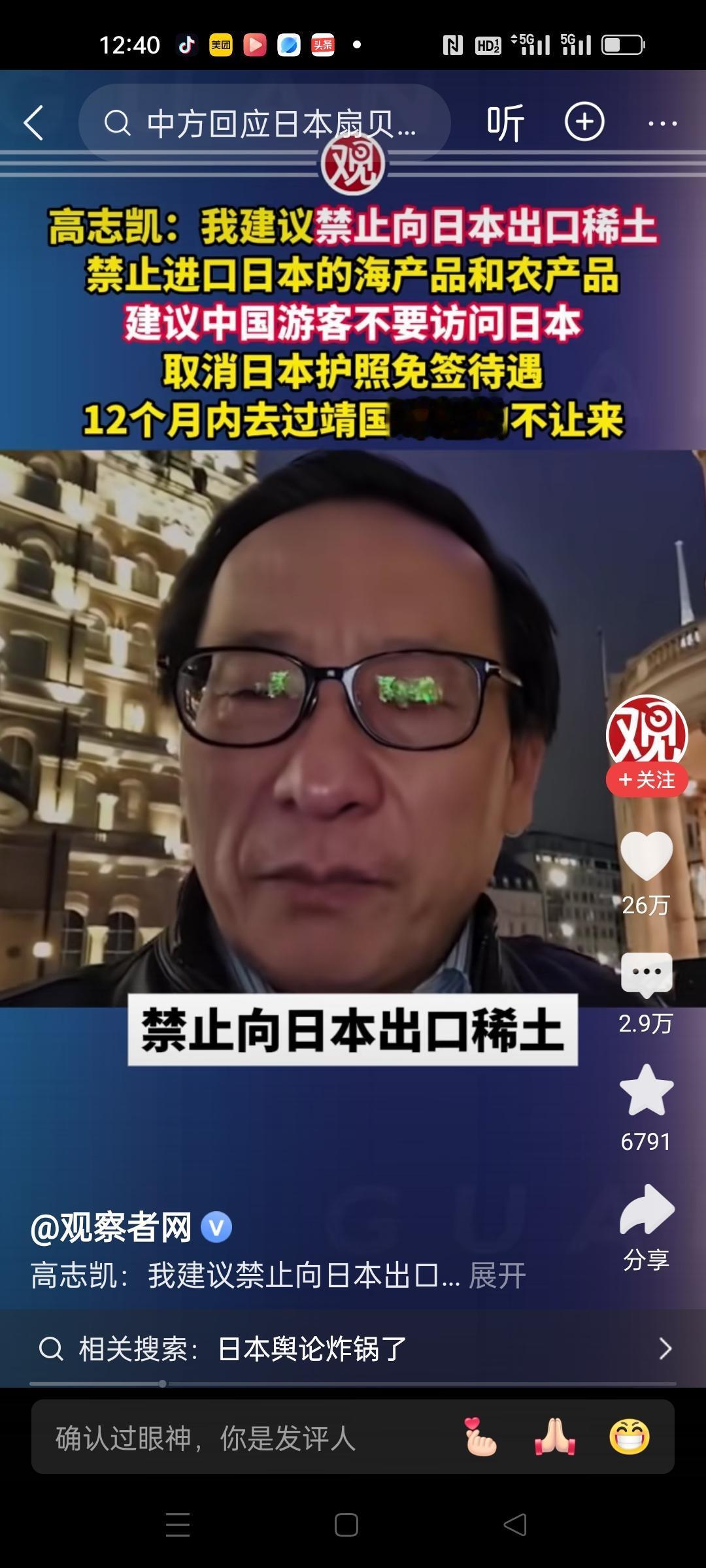 高志凯先生说的,我完全支持 高苗早市的狂妄言论,就要给她教训 也要给日本教训 日本对中国犯下的罪行 所有中国人都不会忘记 这些条件仅仅是制裁,也是警告 日本还以为中国是以前的中国吗 现在胆敢挑衅中国 必定会带来覆灭