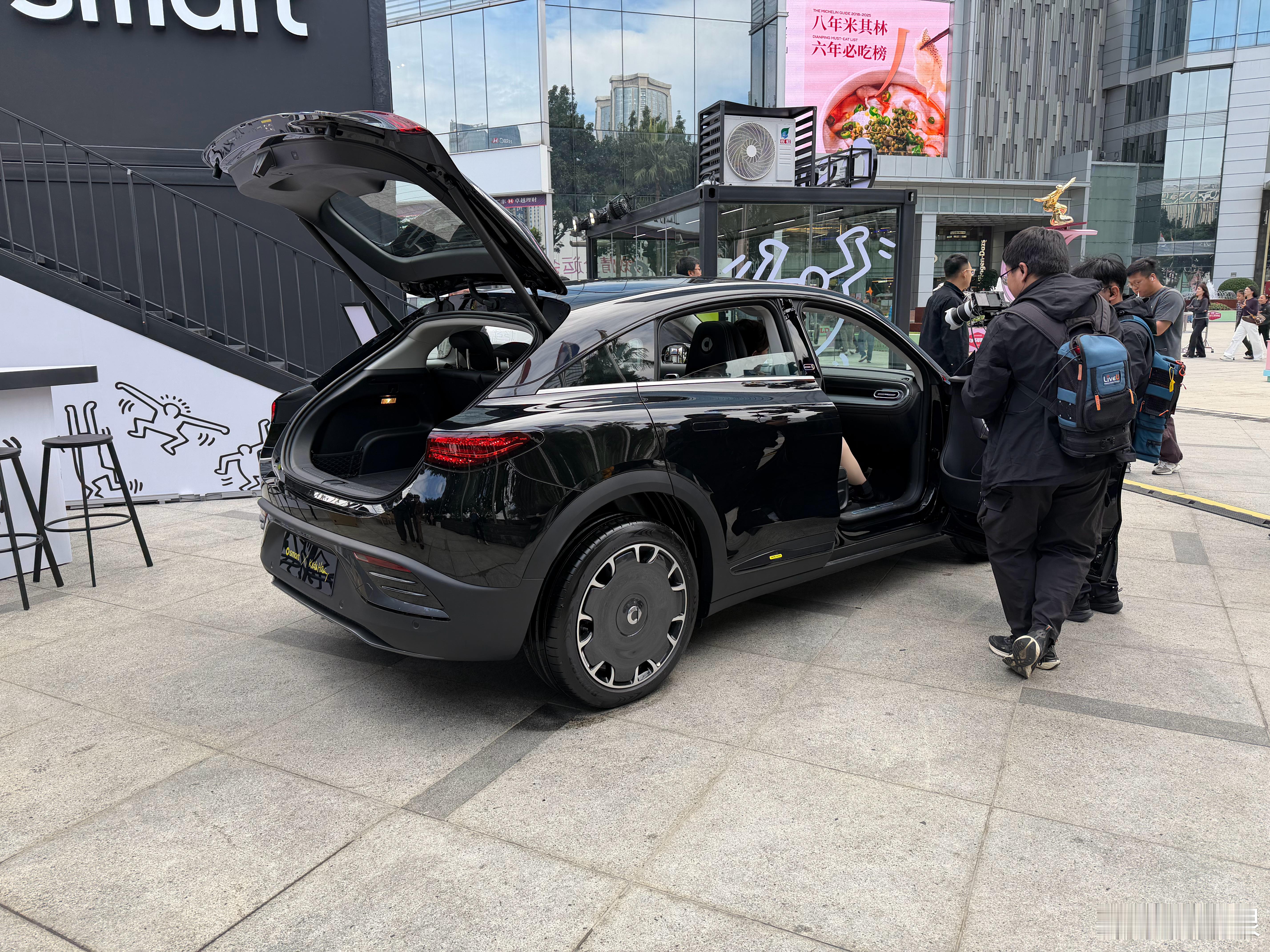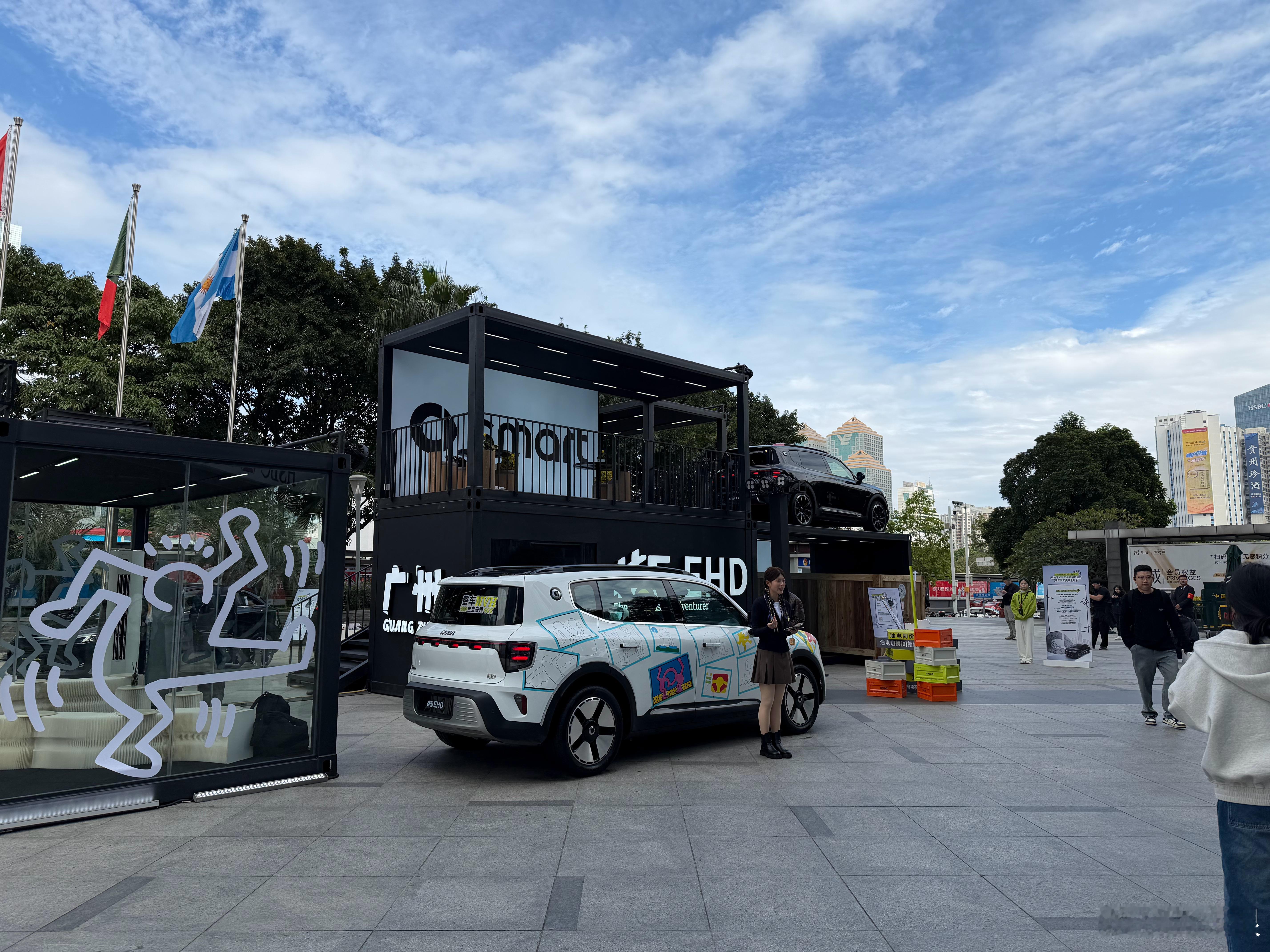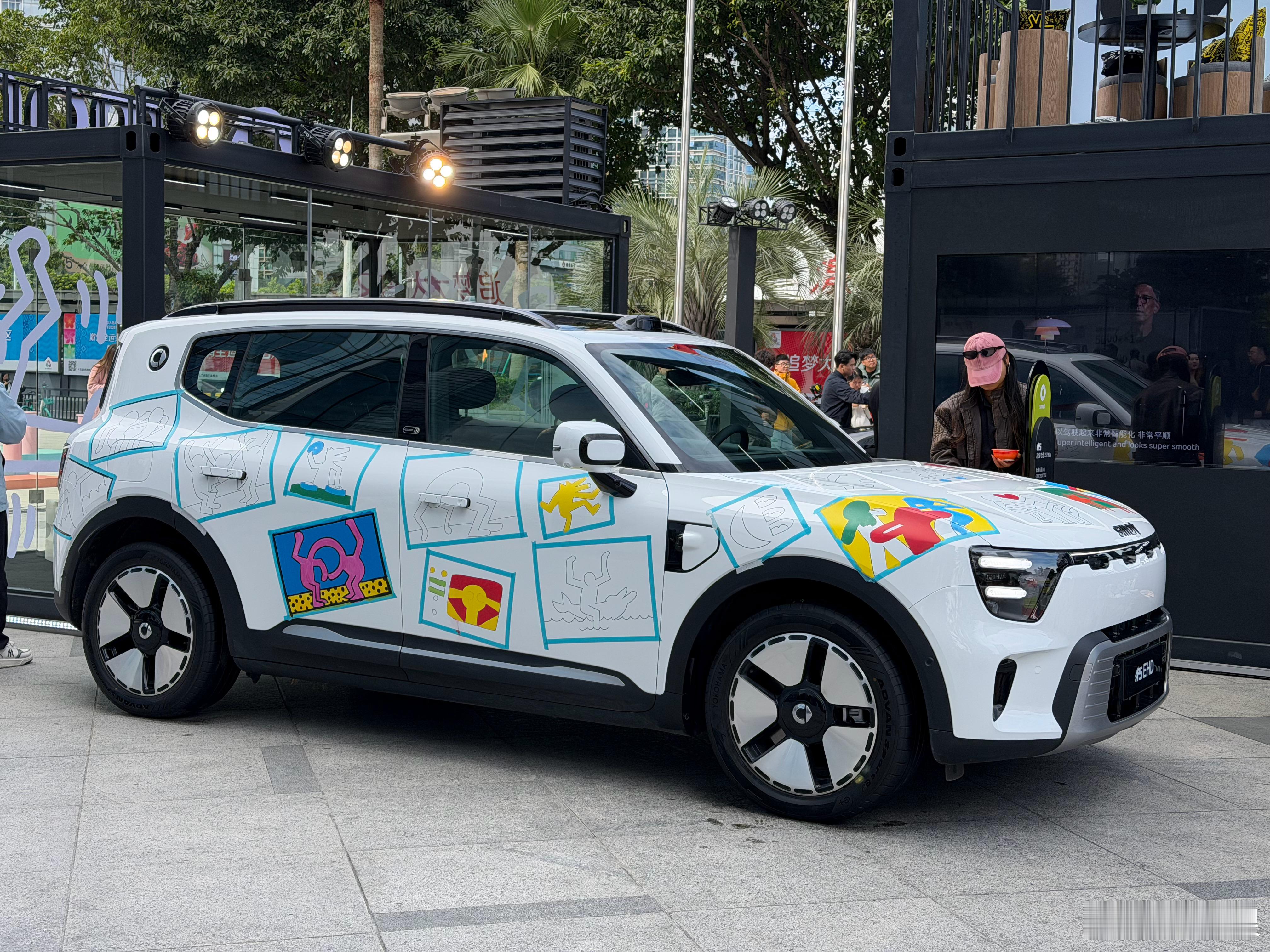 逛街发现smart居然办了个快闪活动有个艺术家在往车上画画。巴博斯版的精灵5配合这款轮圈看着太对了。黑色的精灵3配合这个饼圈也帅。这车艺术成分挺高。人太多,只能拍出草率的照片,你们凑合看