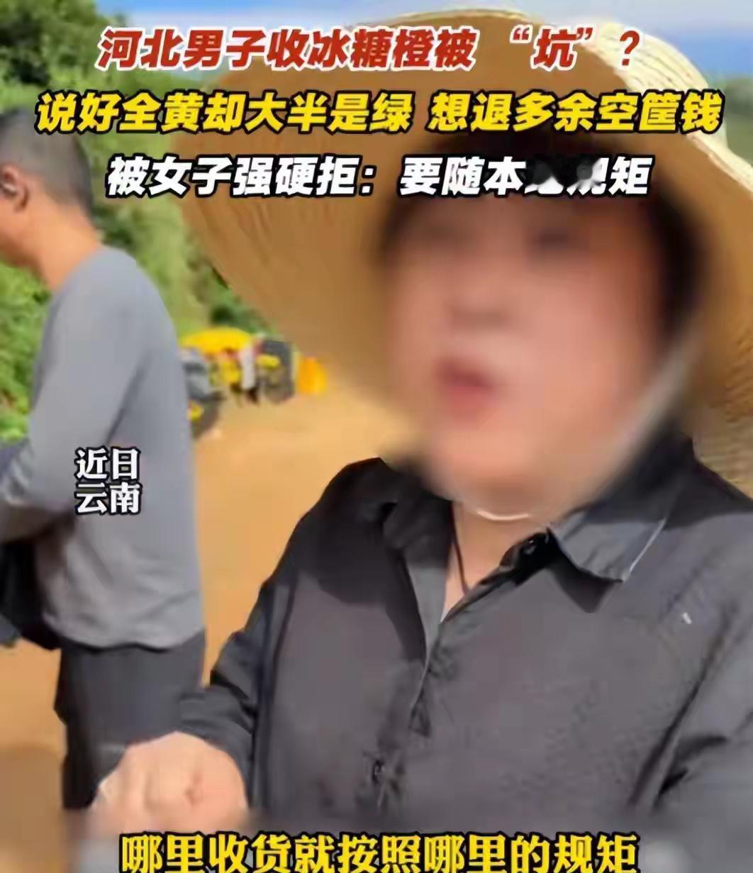 云南的橙子一下子就火了,大姐老家是湖北的,在云南做水果代办,河北的一个小网红去云南的水塘镇采购橙子,交了5000元的定金,采购框子花了3000元,当时给的样品检测13糖多点,结果现场一测11-12个糖。 人家在网络上为了卖好的产品,现场采摘的橙子被骗,现场也报了警,立了合同,可是代办还是会骗人,定金不退,欺骗人家真的是太坏了。