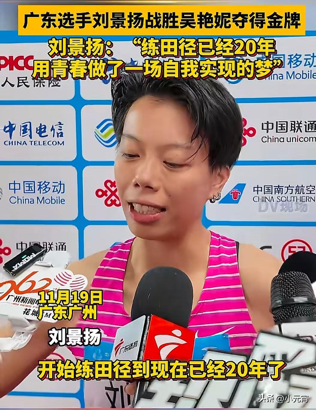 20年苦练无人问,一朝夺冠天下知!28岁刘景扬击败吴艳妮,这才是逆袭的真实模样。 全运会百米栏决赛,刘景扬夺冠,全网都在喊“黑马”,可谁真正了解她?人家从8岁练跨栏,苦熬20年,前两次全运会连决赛都没进,默默当背景板。反观吴艳妮,三次参赛自带流量,输了比赛哭一哭,全网心疼。但刘景扬没有流量、没有热搜,只有日复一日的训练——膝盖缠绷带咬牙跑,教练都说她“狠得不一样”。终于,这次她以绝对实力击败吴艳妮,站上领奖台! 夺冠后,刘景扬笑得灿烂,可她妈在台下哭成泪人。妈妈含泪说:“每次看她膝盖肿得老高还练,我心都碎了。她说‘妈,等我拿金牌’,今天终于等到了!”这哪是黑马?分明是20年汗水浇出的冠军!吴艳妮虽败,但赛后大度拥抱对手,两人都展现了体育精神。 网友们都炸锅了:“原来逆袭不是突然开挂,是人家把努力熬成了习惯!”“以前只关注颜值和话题,现在才知道,真正的冠军在默默用时间说话。”这个故事狠狠打脸了“一夜成名”的幻想——没有天生黑马,只有死磕到底的普通人! 所以,如果你也在坚持一件看似“没结果”的事,别放弃!时间看得见!评论区聊聊:你身边有哪些“用时间逆袭”的故事? 刘景扬