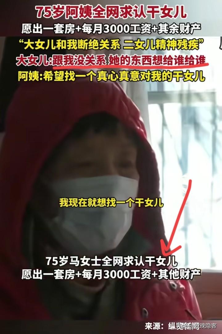 一开始看, 还以为是哪个心善的老人家缺少关心才要做这样疯狂的举动。 仔细去看底下评论,大家都很清醒啊,有网友说,老人自己的子女怎么可能不会想着去要房子和钱呢,看断绝关系就感觉到了,说明老人本身可能也会比较难照顾。 虽然引发了全网认干女儿的风波,但还是要多关注自己家里面吧,这事参与进去感觉也不太好。看起来是很不错,但我还是觉得天上不会掉馅饼,要得到这些肯定要付出很多东西。