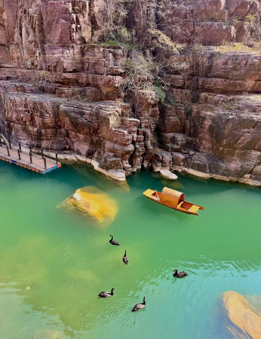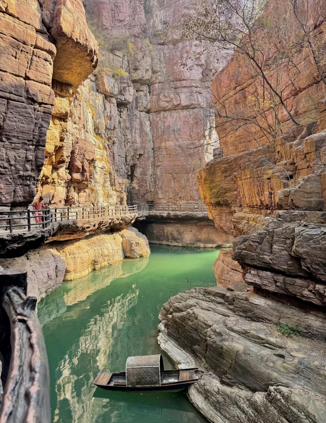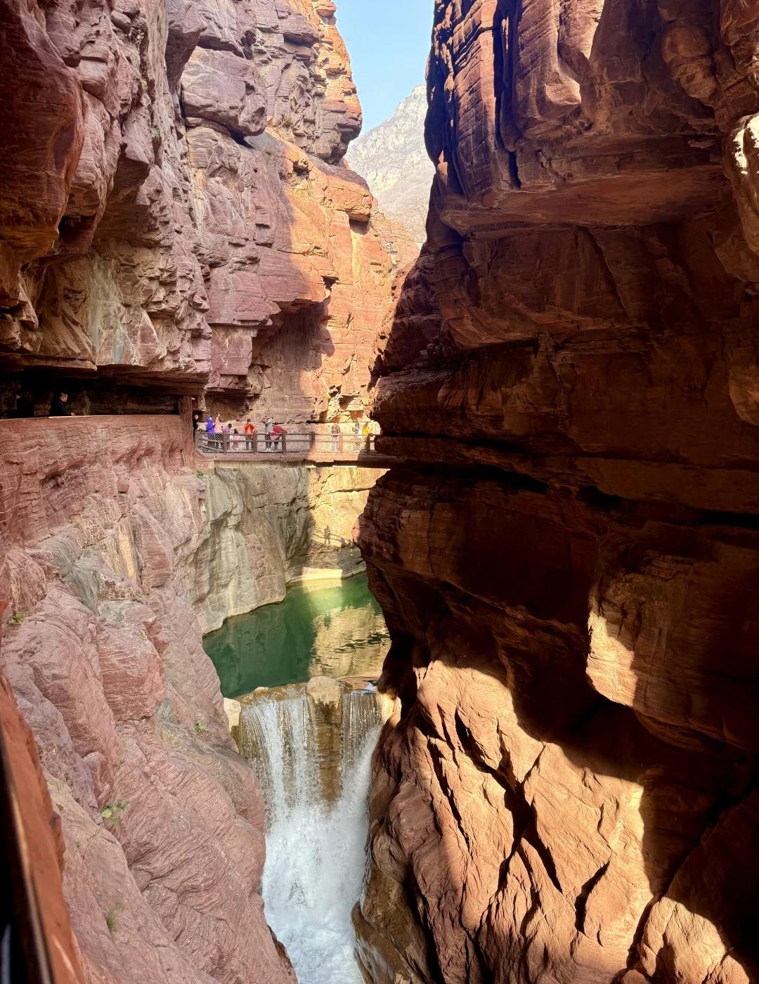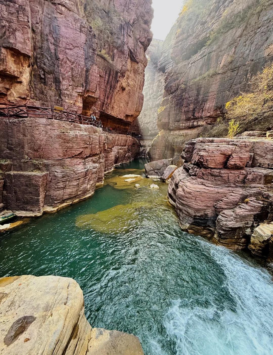 郑州1.5h|闯入亿万年前形成的峡谷⛰️ 抬头是层理分明的赭红色崖壁 低头是翡翠
