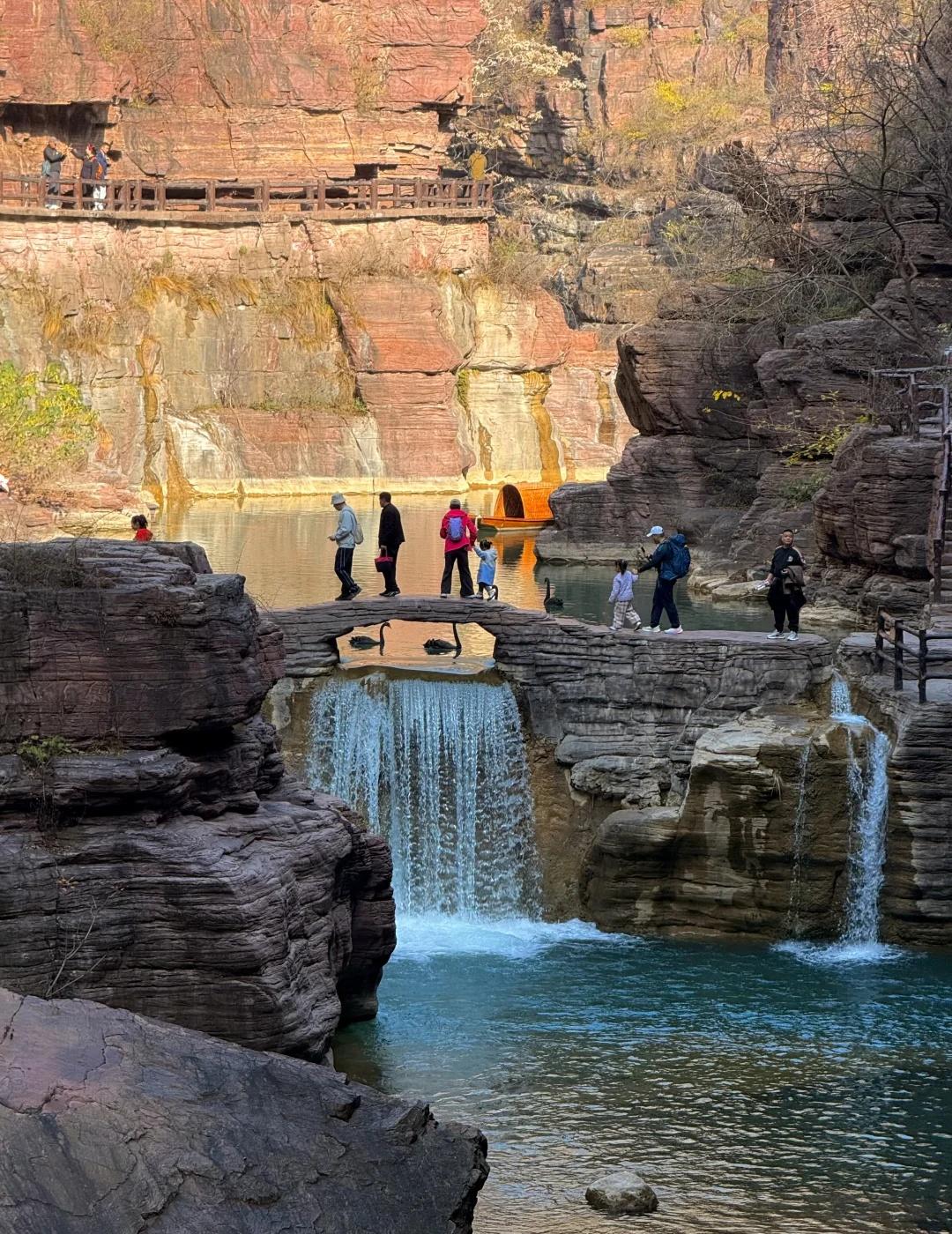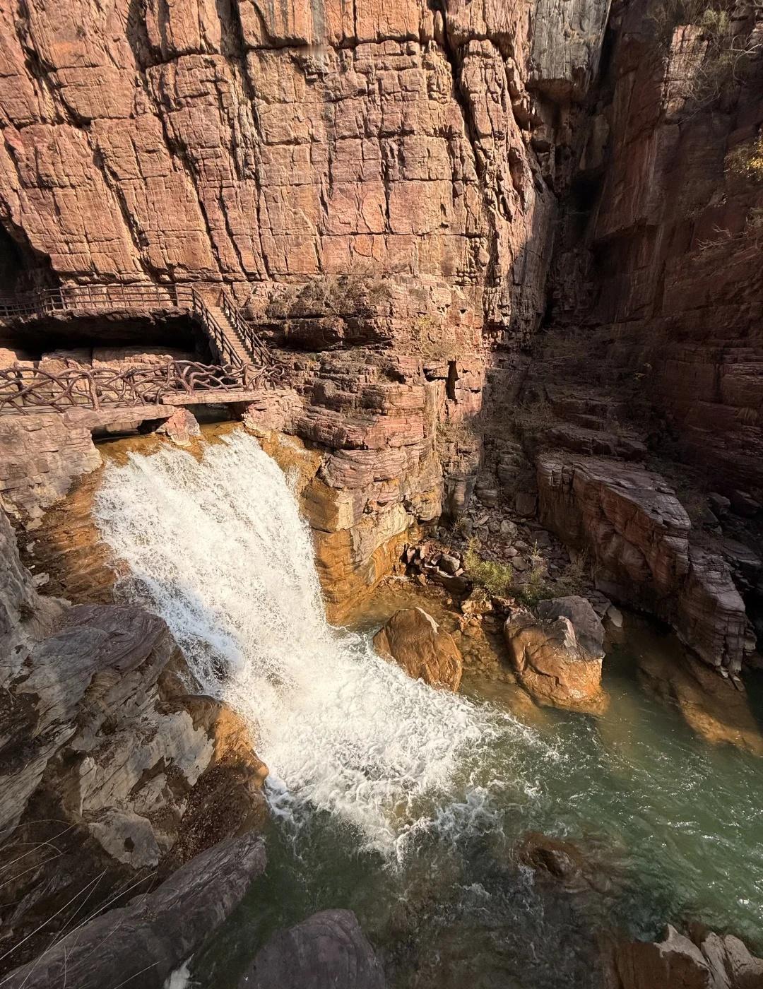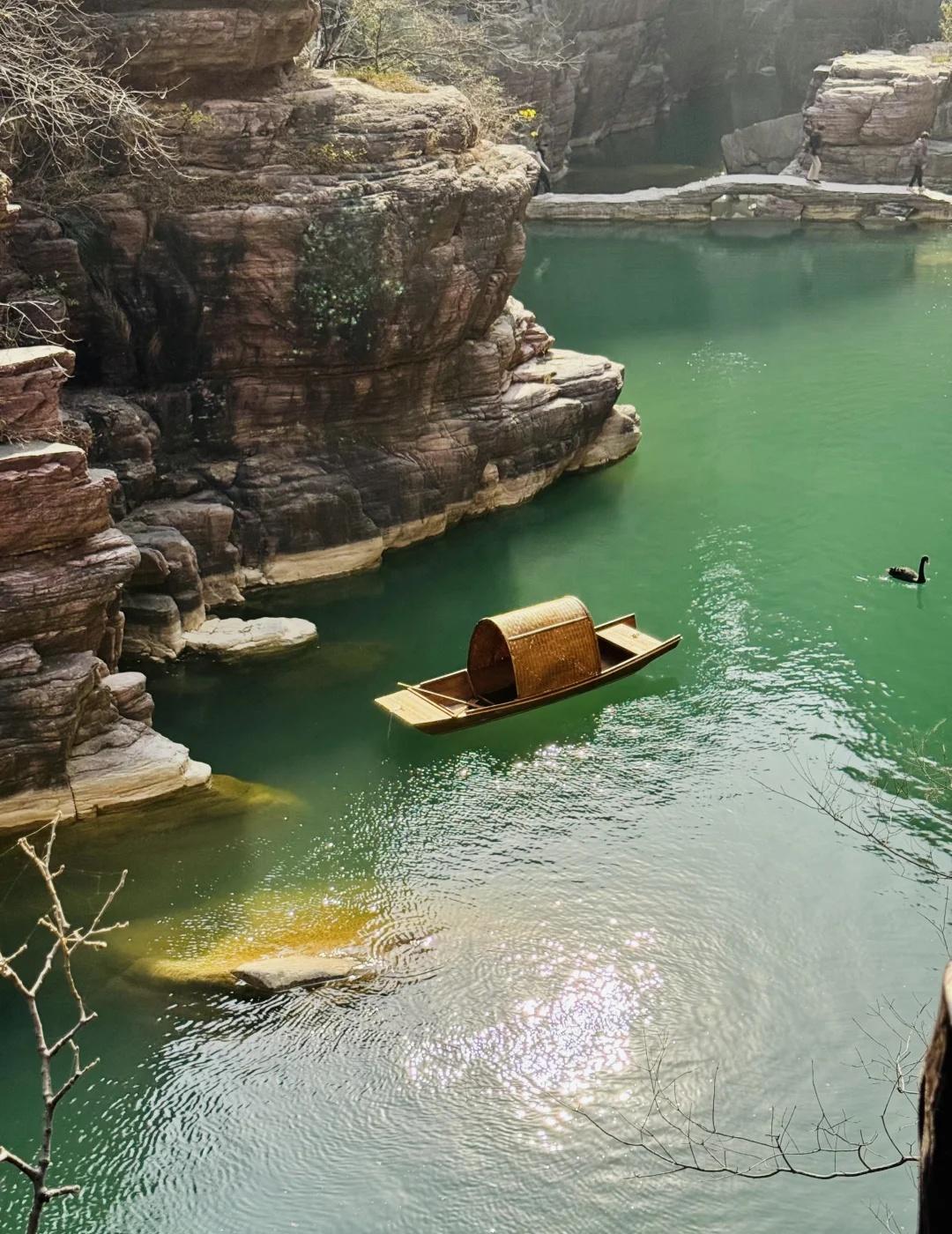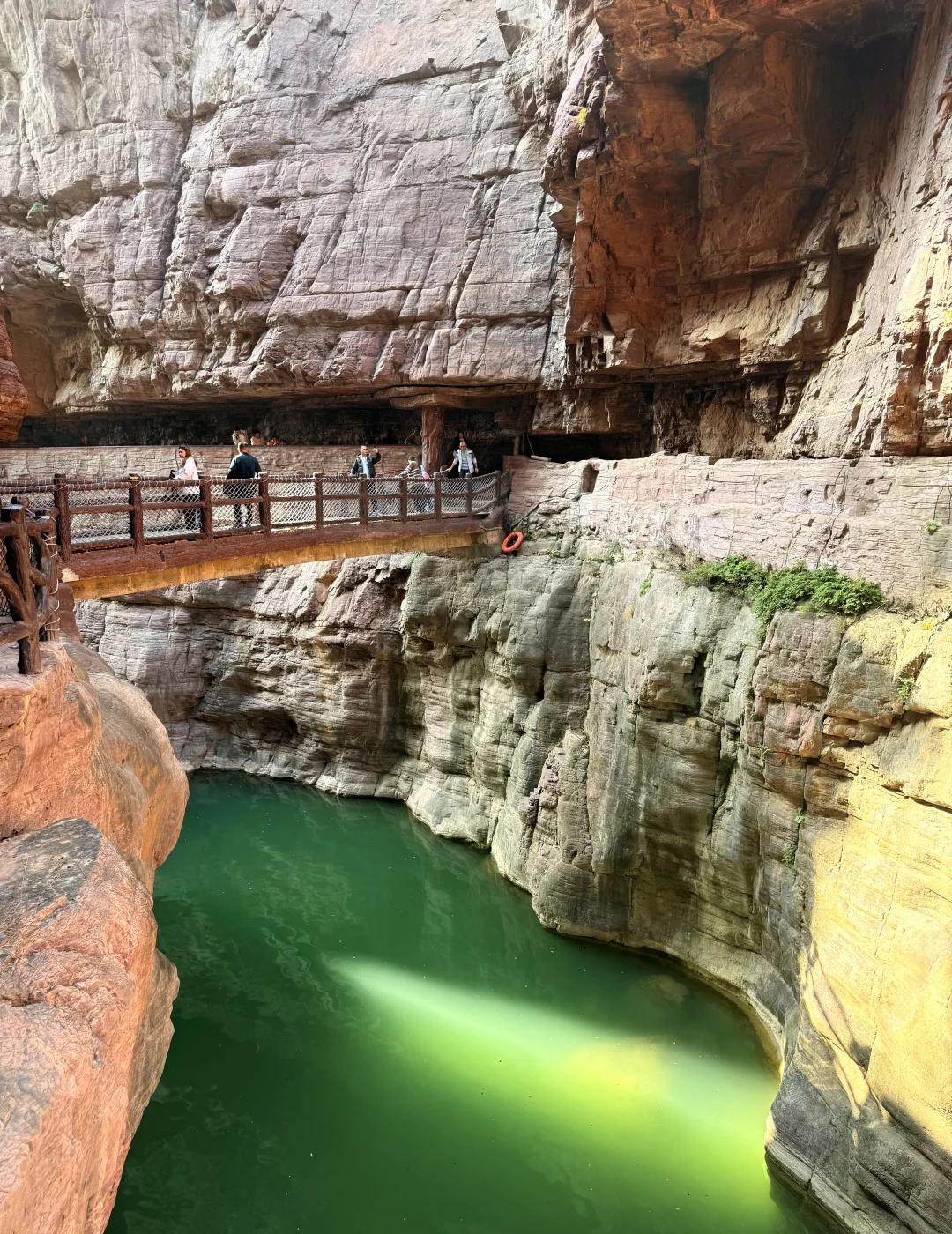 郑州1.5h|闯入亿万年前形成的峡谷⛰️ 抬头是层理分明的赭红色崖壁 低头是翡翠