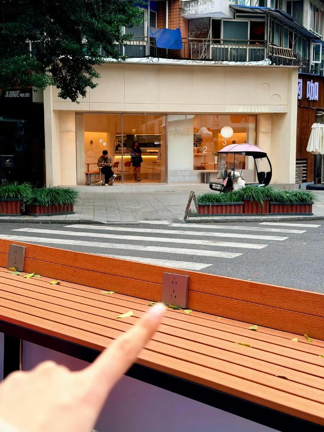 成都的市政建设应该是全国领先的了, 还有路边充电休息的地方。