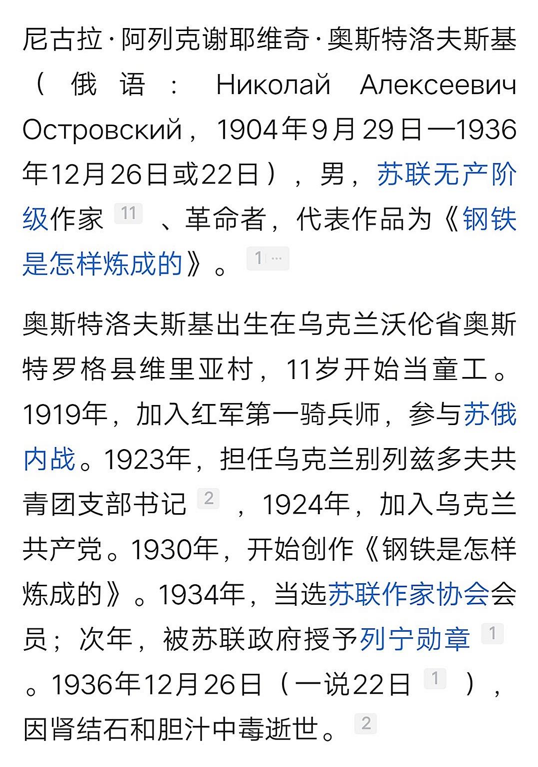 苏联时期的著名人物:尼古拉阿列克谢耶维奇奥斯特洛夫斯基,这位人物不光只是文学作家那么简单,实际上还是一位革命家和军人,可惜呀,这位大人物最终还是在1936年12月26日因肾结石和胆汁中毒去世。暴风雨所诞生的钢铁是怎样炼成的文学作家+革命家+军人红色苏维埃历史故事