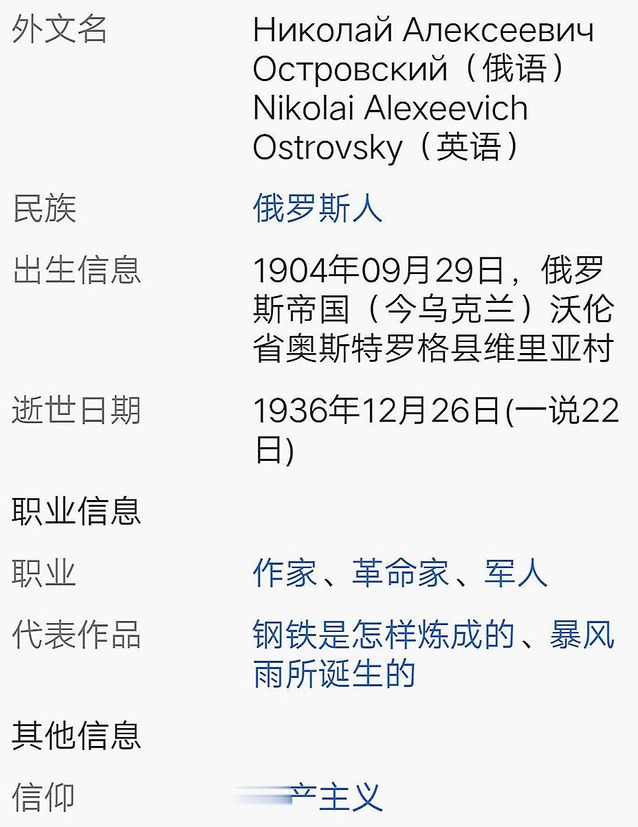 苏联时期的著名人物:尼古拉阿列克谢耶维奇奥斯特洛夫斯基,这位人物不光只...