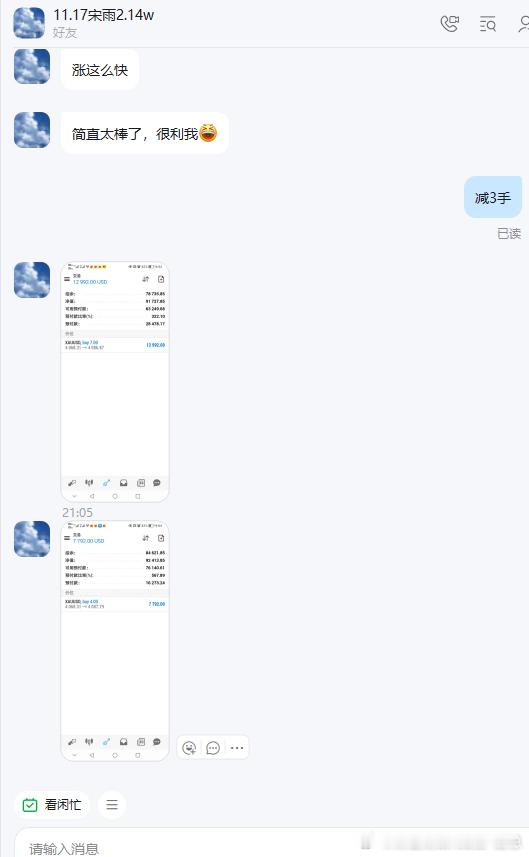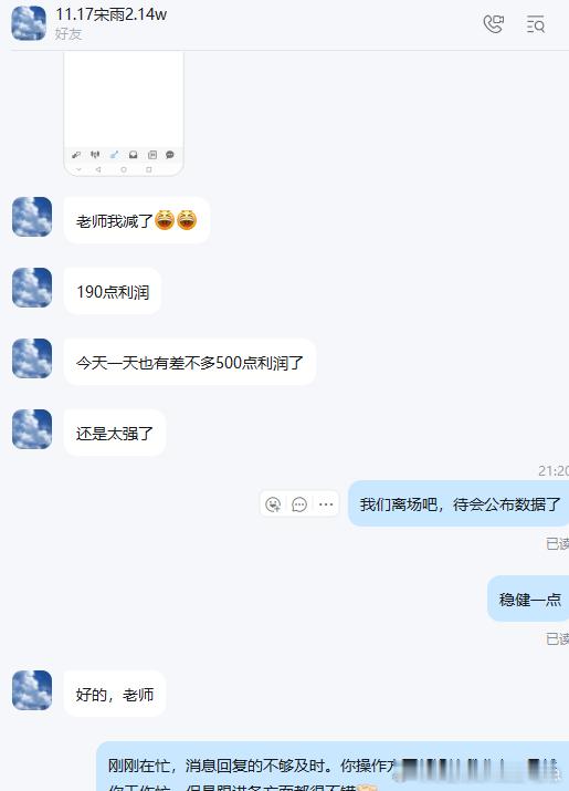 阳光总在风雨后,但这次风雨没来,阳光已到。 今天说的恭喜实在太多了!说真的,我一点都不觉得累,反而更有动力,这段时间状态一直在线,咱们实盘的朋友也跟着老唐赚得盆满钵满。一路走来,老唐最想感谢的,还是你们这群一路相伴的朋友。希望我们能走得更稳、更远,不止实盘,还有微博上的各位朋友,都能赚到自己心仪的那份利润!特别要恭喜实盘的朋友小雨,今天运气真是爆棚!她工作比较忙,其实没跟上太多策略,就零星做了两单,可偏偏就是这两单,收割了500多点利润,非常可观!当然,这背后离不开她的执行力、信任和默契配合。说实话,我们才接触短短一个星期,她就能配合得这么好,也没让我多操心,这点必须给她点赞!但不管操不操心,能和你们这群朋友一起走过这段路,老唐都觉得无比值得。正因为有你们,我的职业生涯才更加温暖、也更有动力。