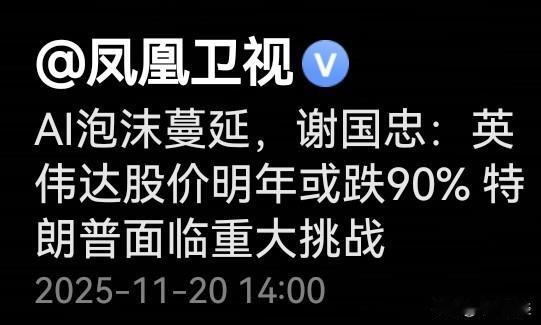 【英伟达之争!】高盛发出警示,提醒人们警惕AI泡沫风险。香港经济学家谢国忠预测,明年英伟达股价将下跌90%。这一言论一出,英伟达总裁急忙出面安抚并反驳,坚称AI不存在泡沫,只有机遇! 然而,世间万物皆具两面性,股票市场亦是如此,辉煌之后往往伴随着黯淡! 在股市,为什么说股票是有个性的 炒股风险有多大 如何预测美股科技股未来的走势 英伟达财报出炉增长大超预期 分享美股的故事