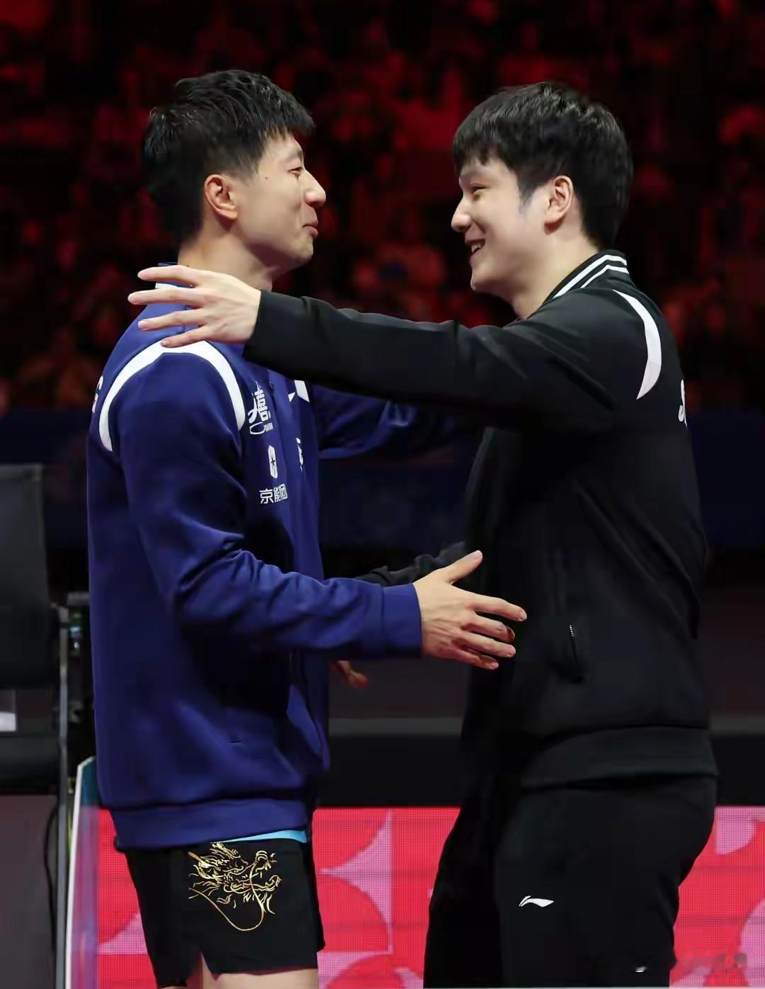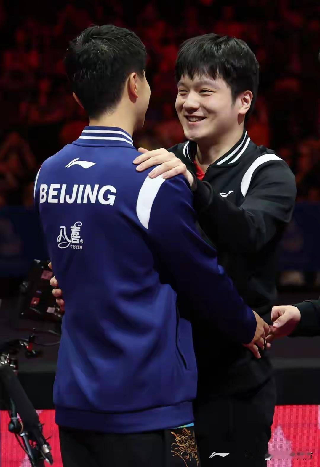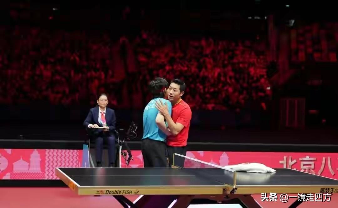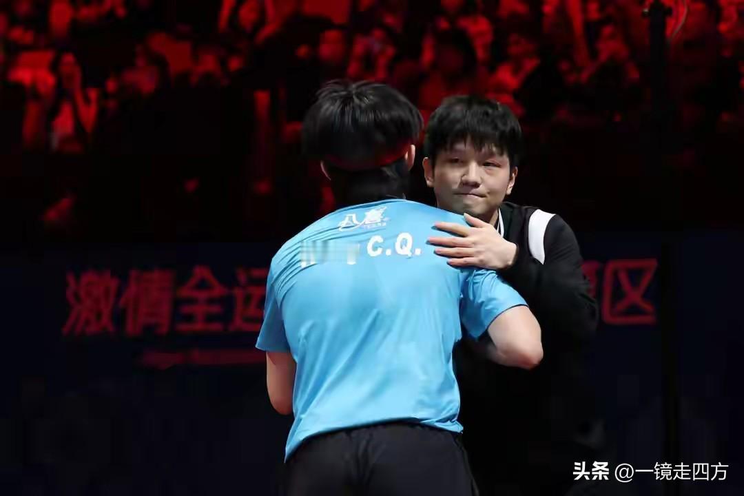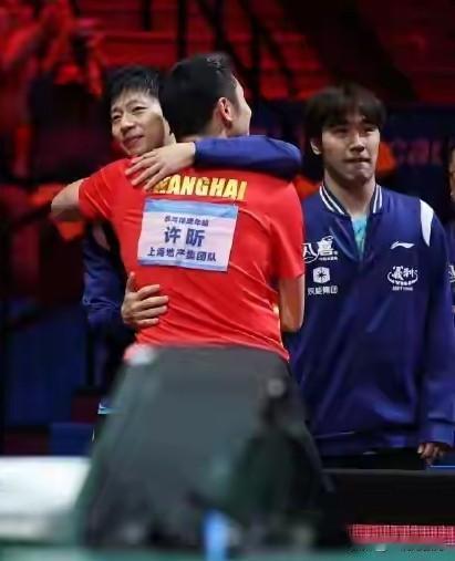 昨晚的全运会乒乓球男团决赛赛场,东京和巴黎两届奥运会男团冠军阵容重聚,马龙、许昕、樊振东和王楚钦四位横跨十几年的中国男子乒乓球标志性人物再次同场竞技,这本身就让人无比感慨。赛后,几人之间互相深情拥抱,“不同组合”的相拥都别有一番意味,让人不觉泪目。