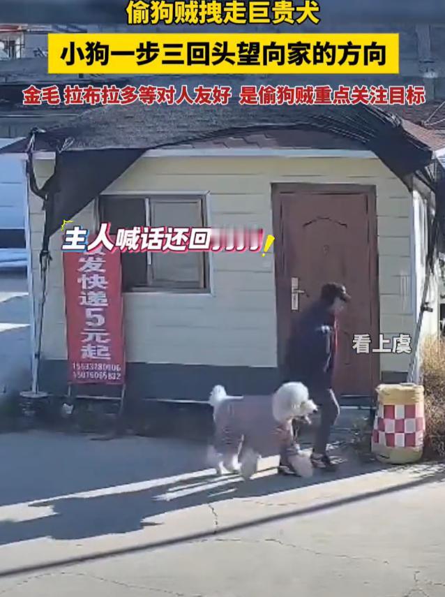 这胆子也太大了!河北保定,一男子在家里养了条巨型贵宾犬,放在家门口院子里好好的,结果却突然不见了,查询监控,发现被一名陌生男子强行拖拽带走,狗主人怀疑:这条狗价值20000元,对方可能就是附近的人!   河北保定一院子里,好好待着的巨型贵宾犬突然没了踪影,狗主人孙先生查监控,心一下子揪紧,画面里陌生男人攥着狗绳死拽,温顺的巨贵挣不过,被拖着往院外走,一步三回头盯着家门方向。   这条巨贵养两年了,不是花钱能衡量的分量,孙先生说,是每天喂食、遛弯,看它在客厅扒拉玩具堆出来的感情,早就成家里一份子。   这狗值钱非常值钱,品相好的巨贵现在市场价能到两万块,尤其是这种血统纯正的,在保定当地算少见的名贵犬种。   有人瞎议论,说狗没牵绳算流浪狗,被牵走活该,这说法根本站不住脚,牵绳是公共区域的规矩,自家院子属私人地方,哪有必须牵绳的道理?   就像电动车停院里没上锁,也不能随便推走,流浪狗是没主人、到处晃的,院子里的狗明摆着有主,就算没拴绳也是私人财产。   孙先生越想越犯嘀咕,怀疑是附近人干的,这话不是没根据,保定近年偷狗的不少,有团伙专挑名贵犬下手,还爱找熟门熟路的地方动手,之前有案子里,偷狗的就开套牌面包车,专盯家门口的狗下手,三两下就拖走。   监控里那男人动作挺利索,不像第一次干,巨贵体型大,特征明显,只要顺着监控线索查,找到不算难。   按法律说,偷这种两万块的狗已经够得上盗窃罪,数额早达到“较大”标准,一旦抓到得负刑事责任。   养狗的都懂这种滋味,丢的不只是宠物,是家里一份子,现在孙先生已经报警,就盼着能早点找回狗。   这事也给大家提个醒,就算把狗放自家院子,也得多留意,毕竟偷狗人眼睛盯着名贵犬,稍不注意就可能下手。   光天化日往人院子里拖狗,这行为不光缺德,更是犯法,希望警方能赶紧抓住这人,也让其他偷狗的掂量掂量,伸手必被抓,别以为偷条狗不算大事,真要追究起来,牢饭可不好吃。