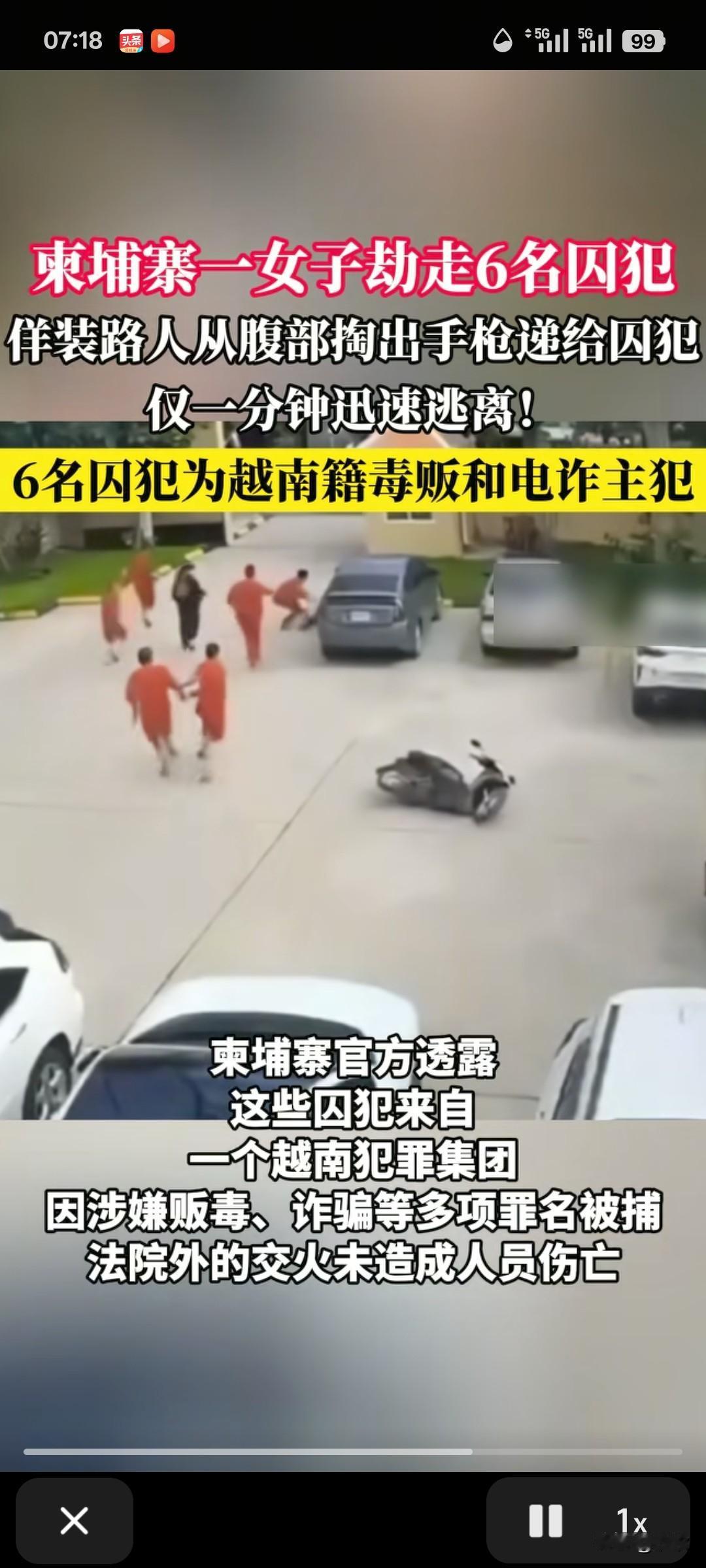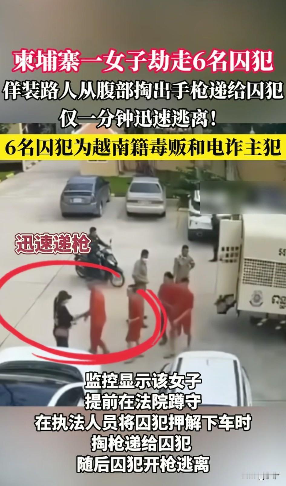 越南籍女子这爱真是震惊所有人, 单枪匹马就去救自己的男友, 在柬埔寨法院外劫囚犯, 居然还成功了, 当时女子伪装成路人, 囚车刚到狱警也是没想到, 在法院大院居然有人敢劫囚犯, 女子不慌不忙把手枪就递了过去, 男友拿着枪就对着狱警, 狱警撒腿就跑, 还有一个摔倒后, 慌忙爬进车底躲避, 团伙还想把狱警拖出来, 最后几人大摇大摆跑了, 7人9小时候被抓捕归案, 女子也被抓住了, 因为高颜值被广泛关注, 监控曝光后, 这劫狱一点技术含量也没有, 工作人员也是大意了, 这女子也是为了男友够疯狂的, 大家对于越南女子为了男友柬埔寨劫狱怎么看? 越南籍女子劫狱 越南救男友 越南女子劫狱 柬埔寨救男朋友 越南女子劫囚车 越南女人劫狱